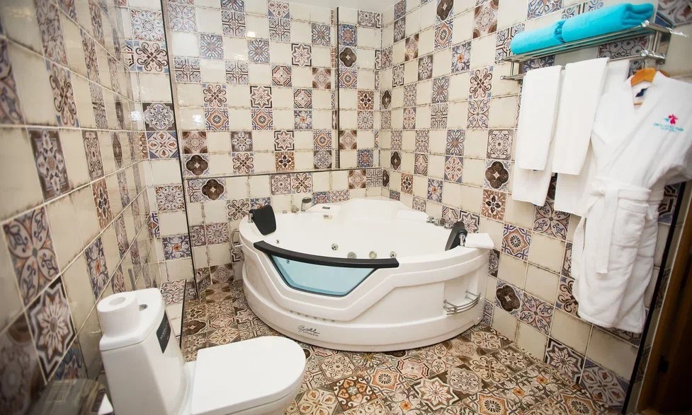 В номере: душ, туалет, ТВ, холодильник, кондиционер, сейф, фен, телефон, чайная станция, электрочайник, двуспальная кровать («King size»)