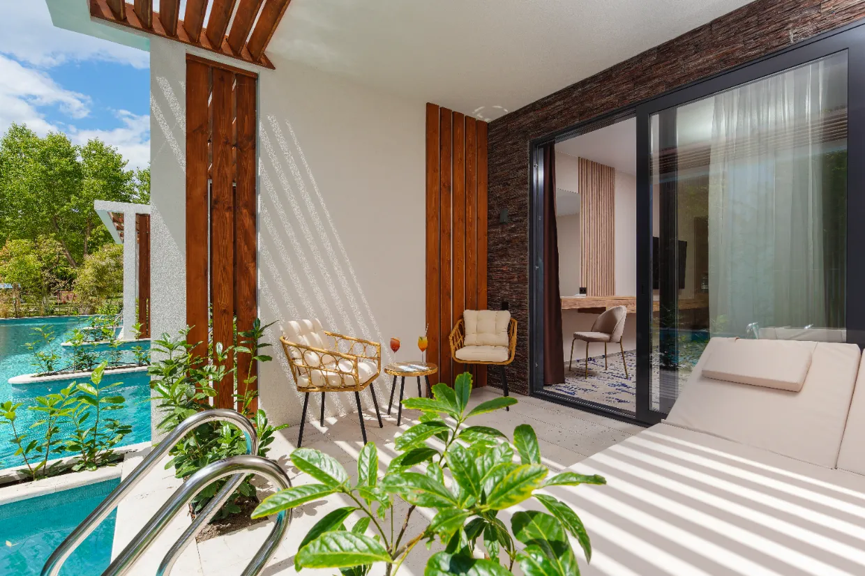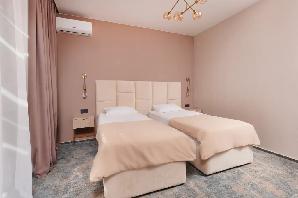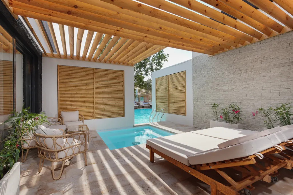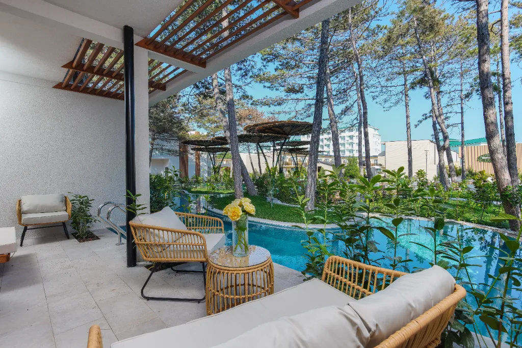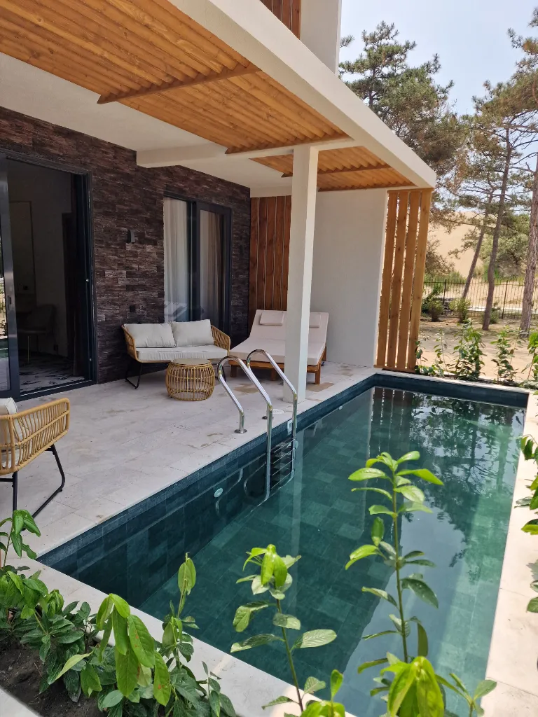 - Два открытых бассейна (один с подогревом и один без подогрева) с шезлонгами