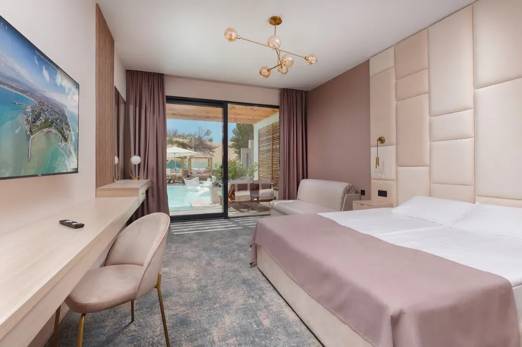 открытый бассейн без подогрева, спортивная площадка, открытый бассейн с подогревом, сауна, анимация, Wi-Fi, песчаный (пляж собственный - 150 м, полностью оборудованный шезлонги, теневые навесы, 1-я линия)