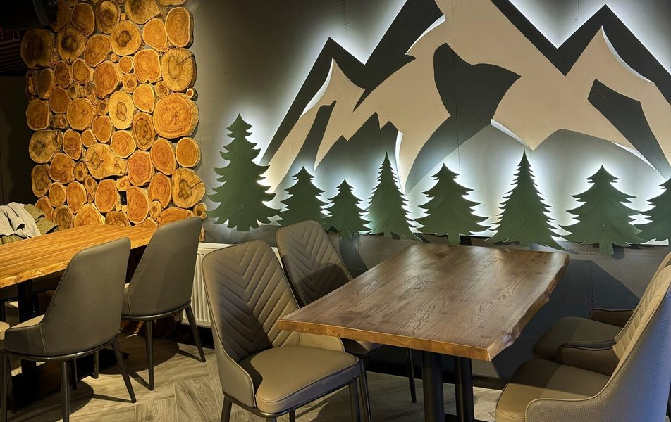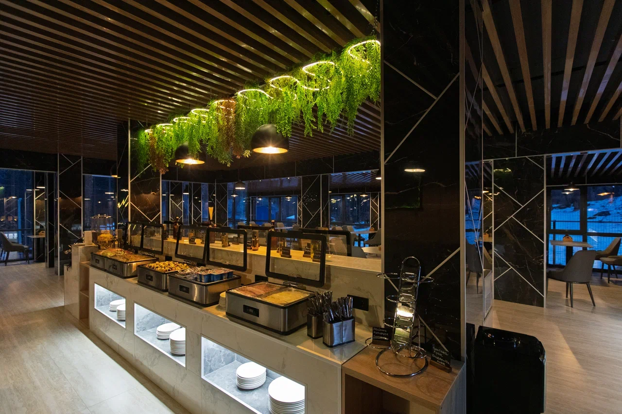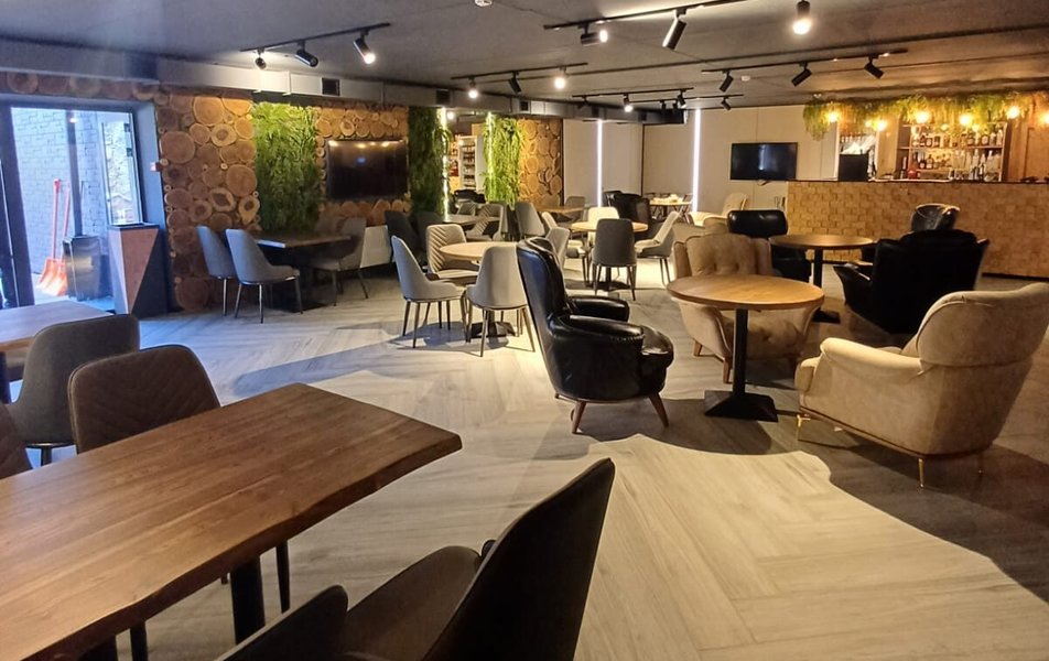 ресторан (Основной ресторан удобно расположен на первом этаже здания, площадью 140 м² с возможностью одновременной посадки до 80 человек.), бар (Бар удобно расположен на нулевом этаже здания, площадью 110 м², с возможностью одновременной посадки до 45 человек.)