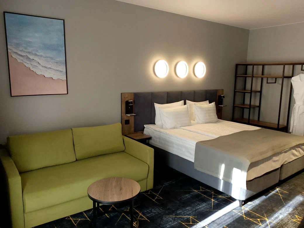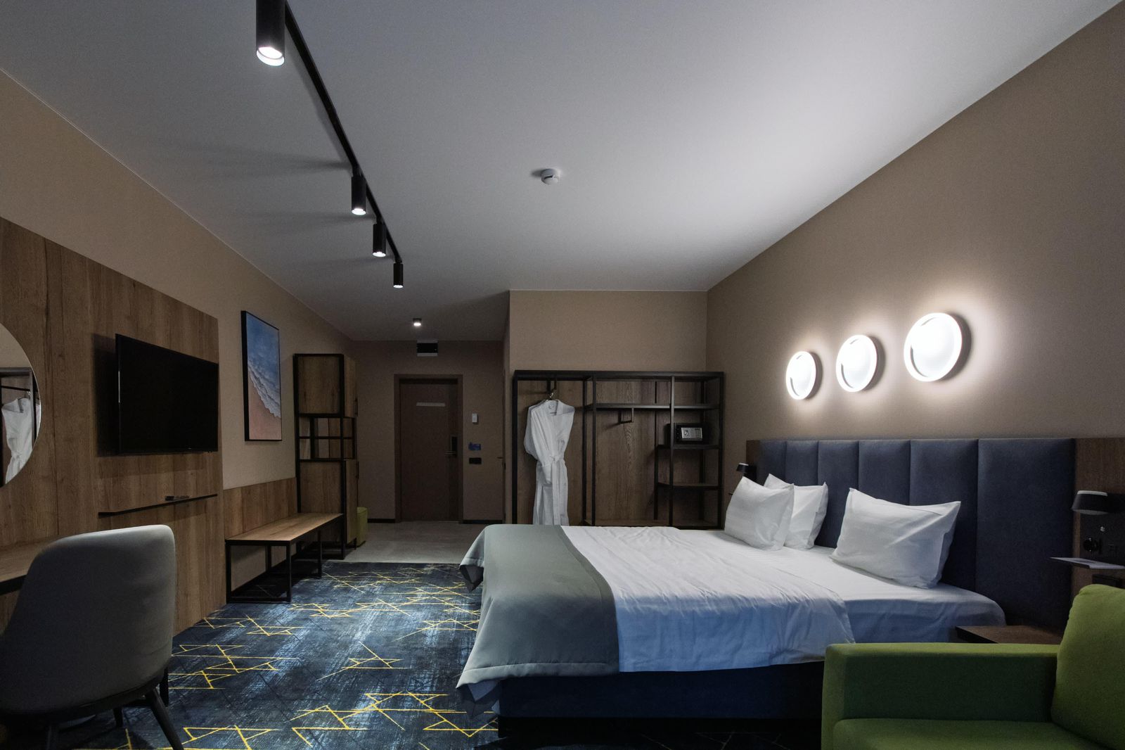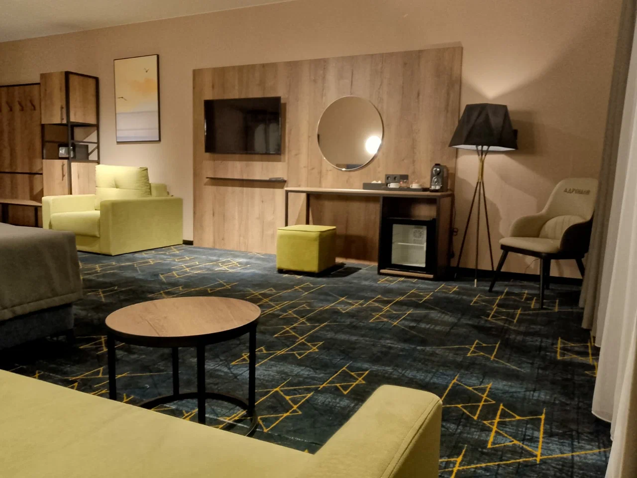 В номере: ванна, туалет, ТВ, сейф, фен, телефон, чайная станция, двуспальная или две раздельные кровати, диван, кресло, балкон. Двухкомнатный номер – площадью 46 м², предоставляет гостям в первой комнате диван размером 180 на 200 см, а также кресло кровать, а во второй комнате кровать размером 180 см на 200 см, с высотой матраца 21 см. /по запросу возможно разделение кроватей/, что позволяет комфортно разместиться до 5 человек разного возраста, ванная комната размером 4.5 м², в каждой комнате телевизор.