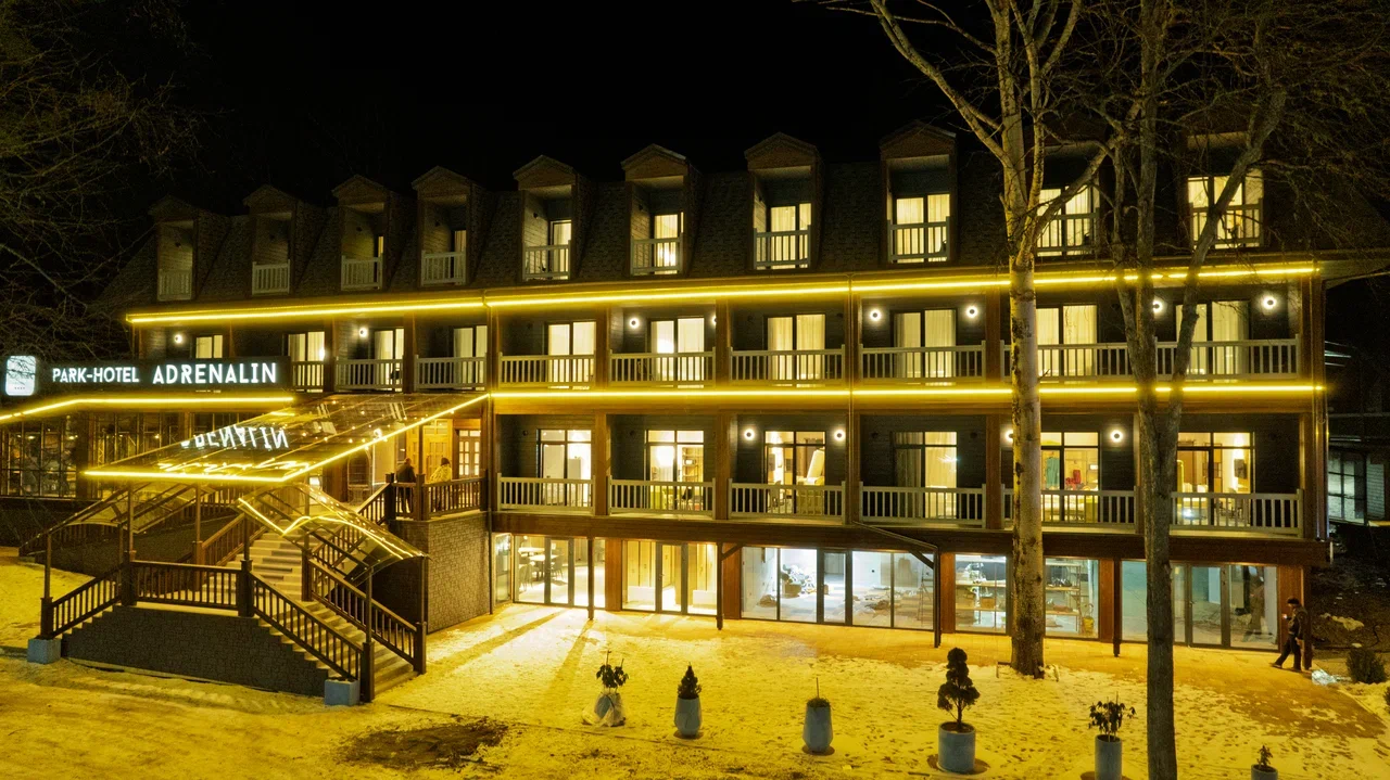 Парк-отель Адреналин — новый современный отель, состоящий из 4 этажей общей площадью 2400 м², расположенный на территории буковой рощи, в посёлке Архыз республики Карачаево-Черкесии.