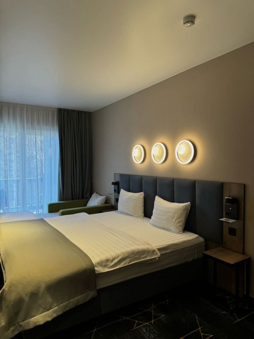 В каждом номере: удобные кровати, капсульная кофе машина, большие ванные комнаты с подогреваемыми полами, а также современное техническое оснащение.