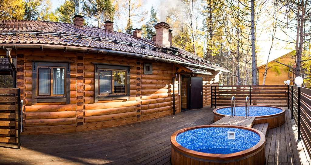 Банный комплекс с купелями под открытым небом состоит из малой и большой бань.