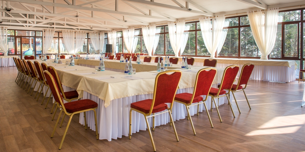 Летний панорамный конференц-зал / банкетный зал «Ривьера», площадью 200 м², подойдет как для проведения конференций и семинаров, так и для организации банкетов, кофе-брейков и фуршетов.