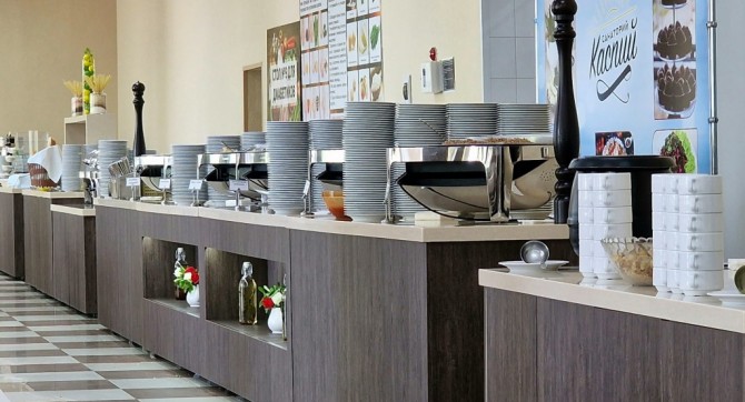 В санатории работают ресторан и кафе, где гости могут заказать себе питание.