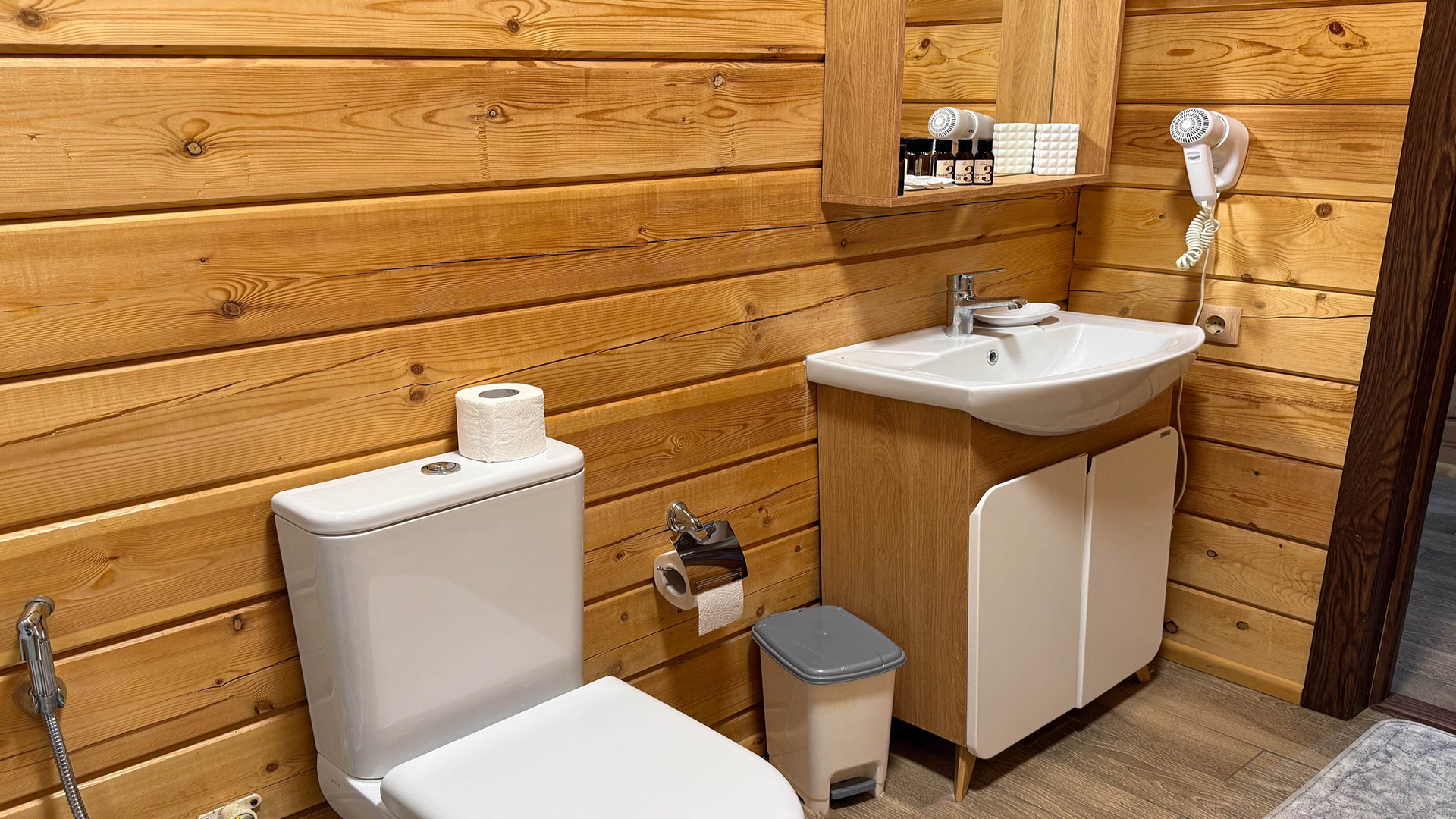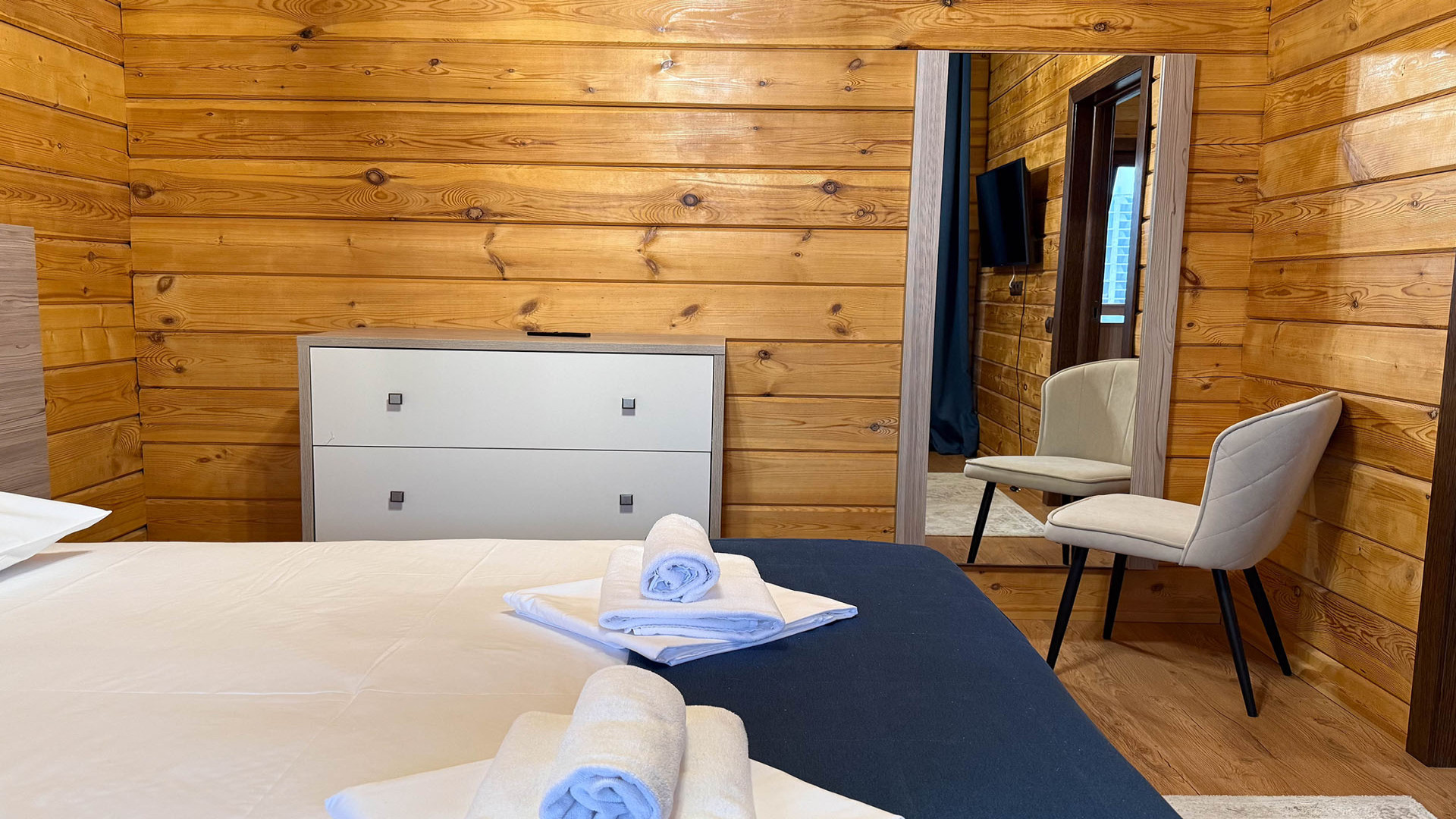 В номере: душ, туалет, ТВ, холодильник, кондиционер, фен, балкон, камин