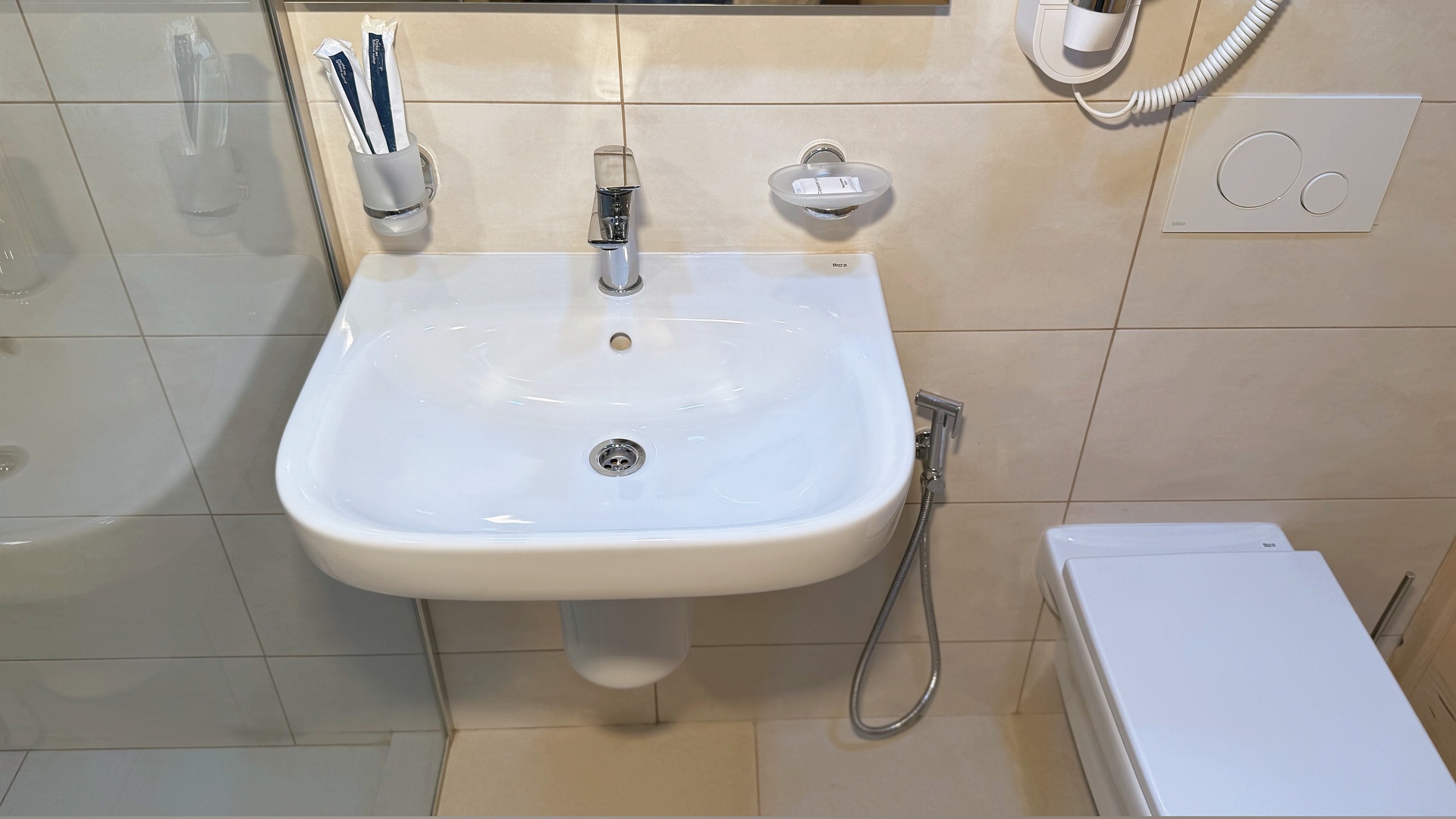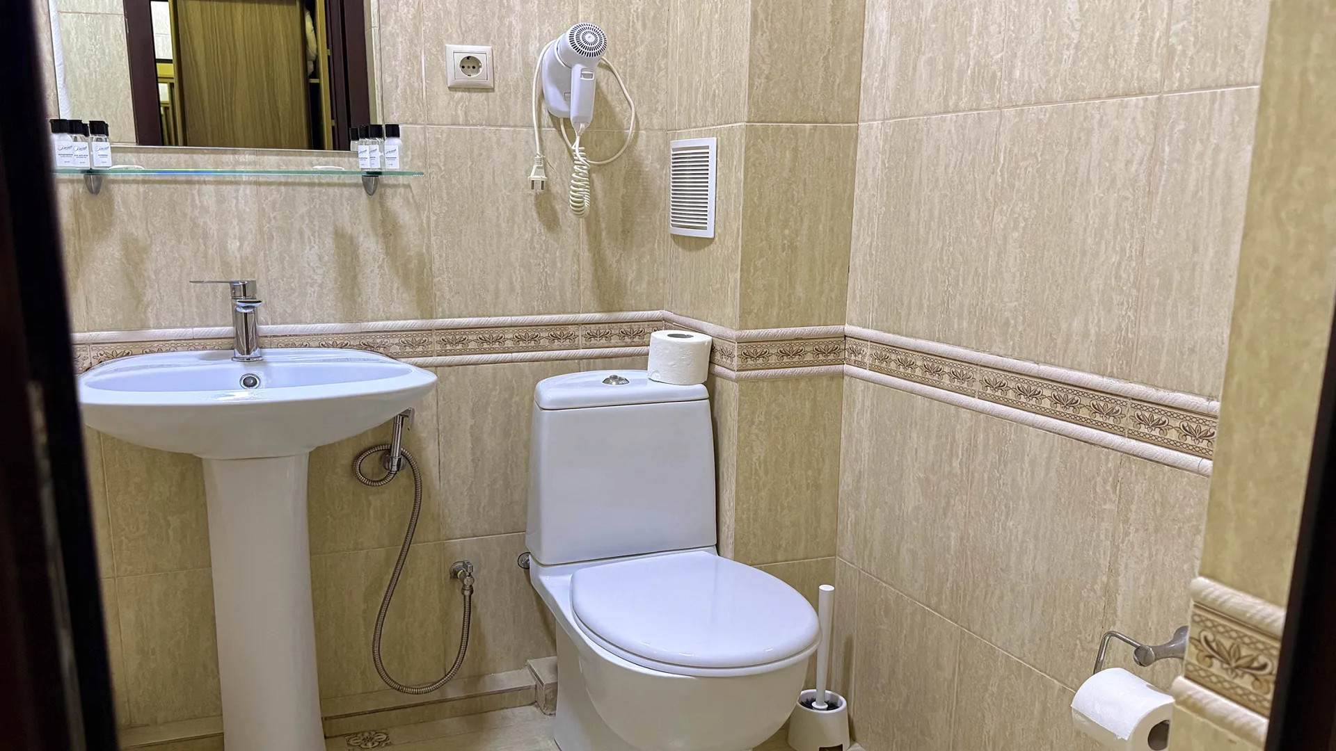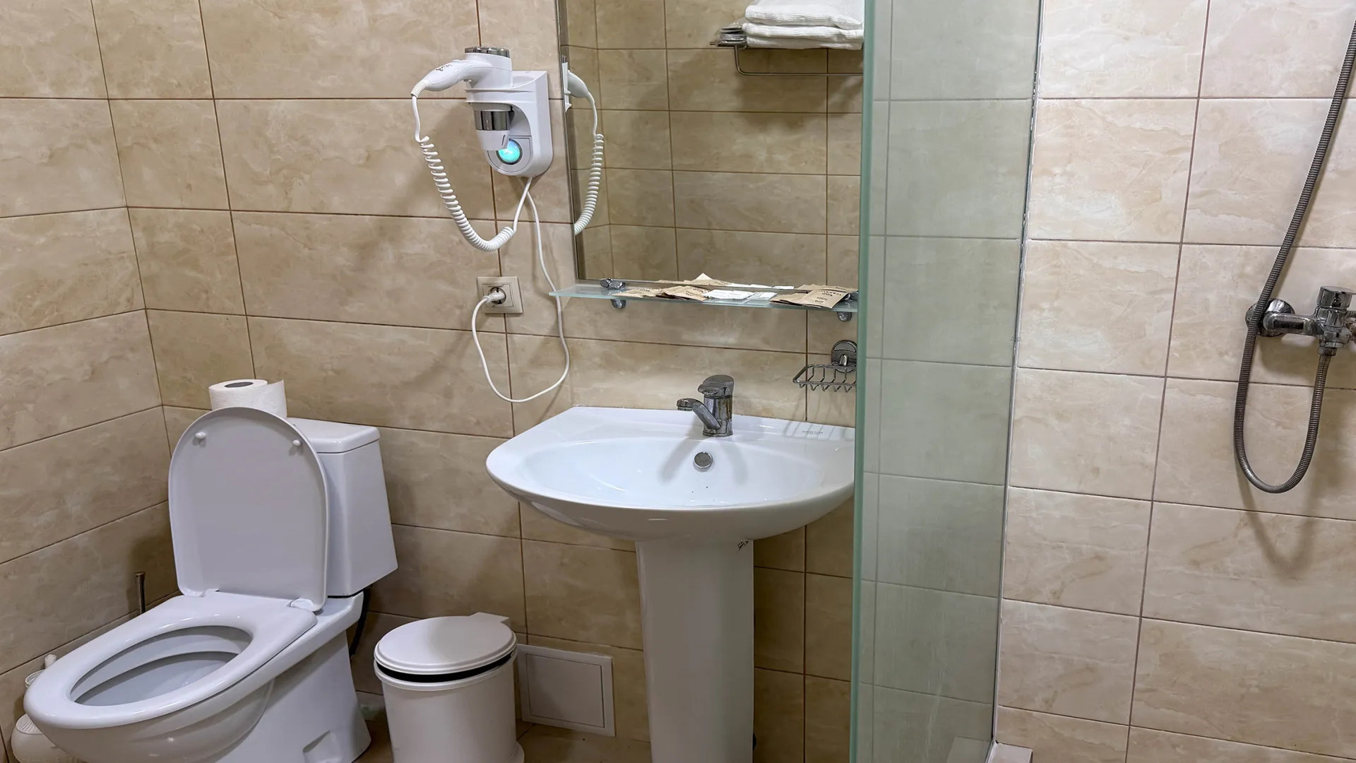 В номере: душ, туалет, ТВ, холодильник, кондиционер, фен, балкон