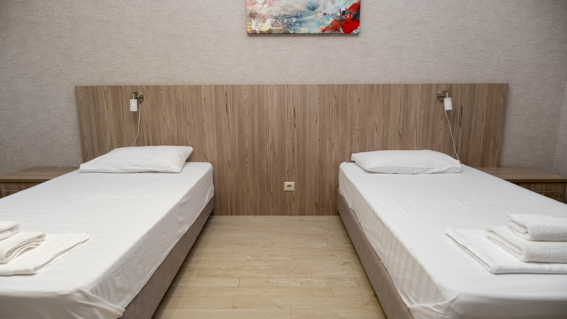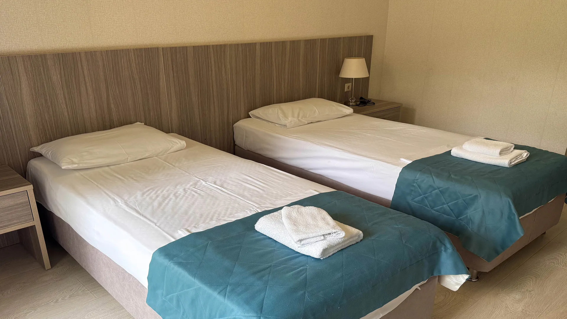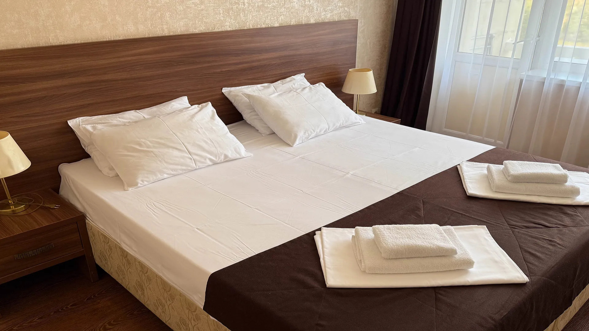 В номере: душ, туалет, ТВ, холодильник, кондиционер, фен, двуспальная или две раздельные кровати, балкон. размещения 1 гостя на доп. месте (раскладушка)