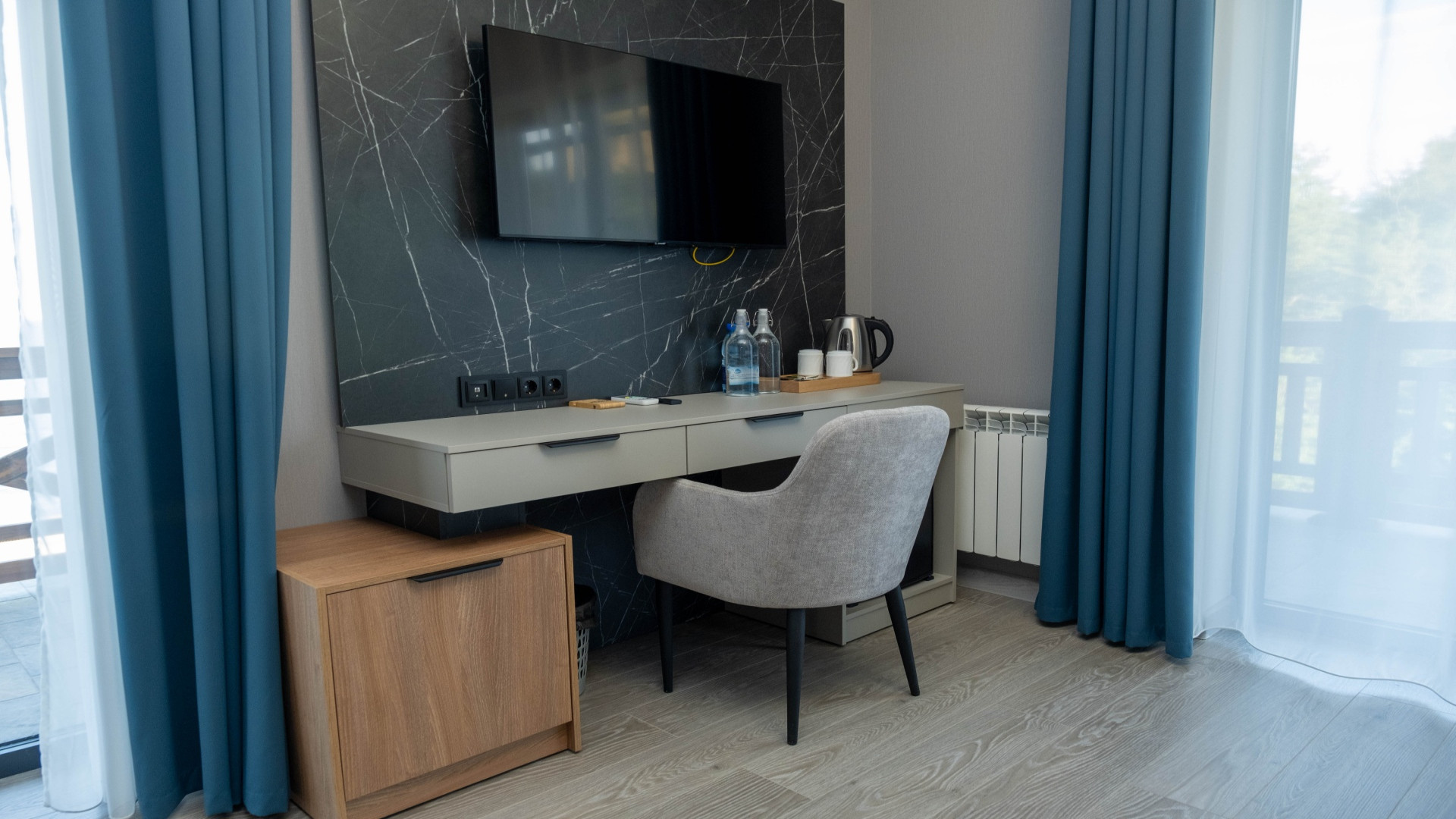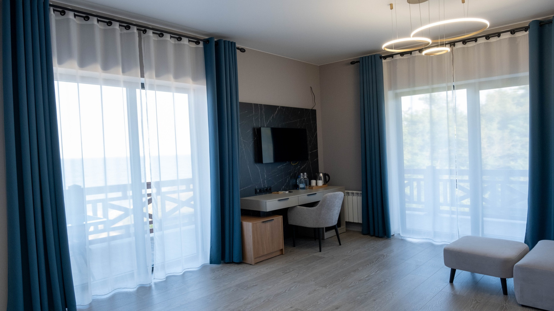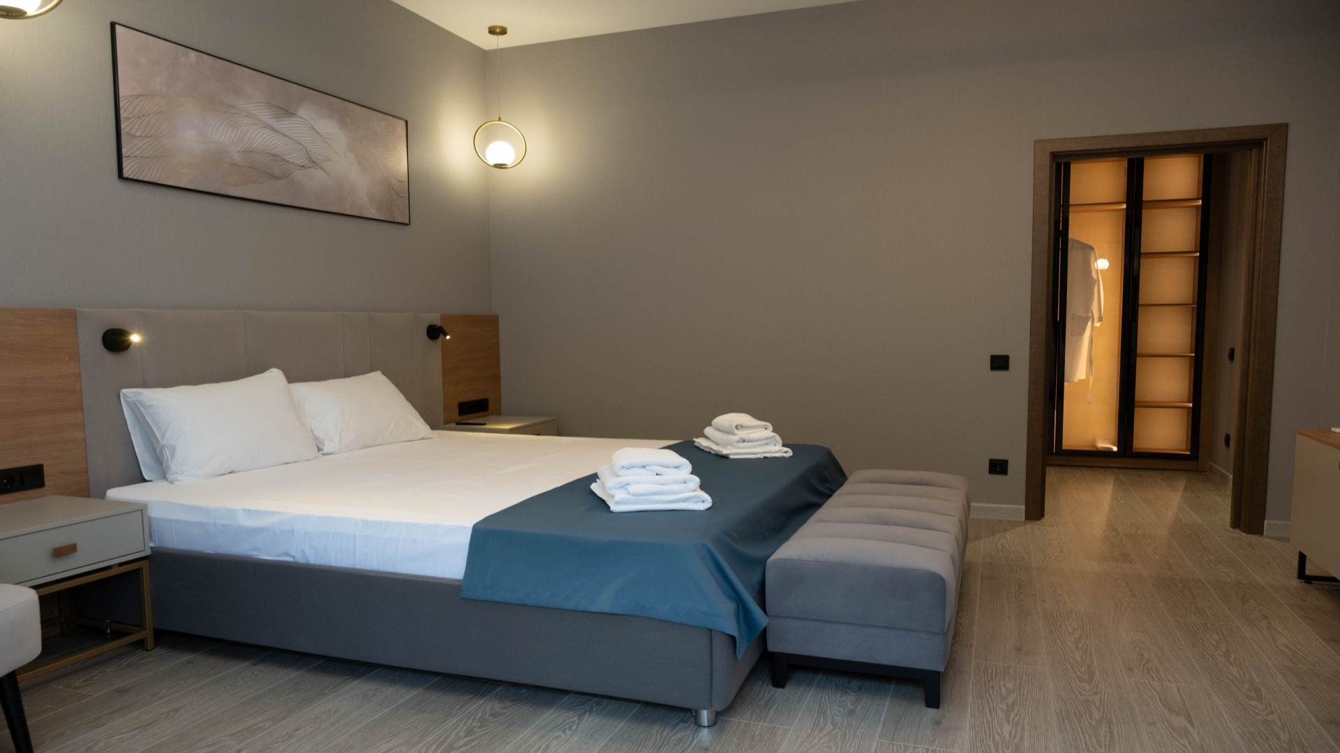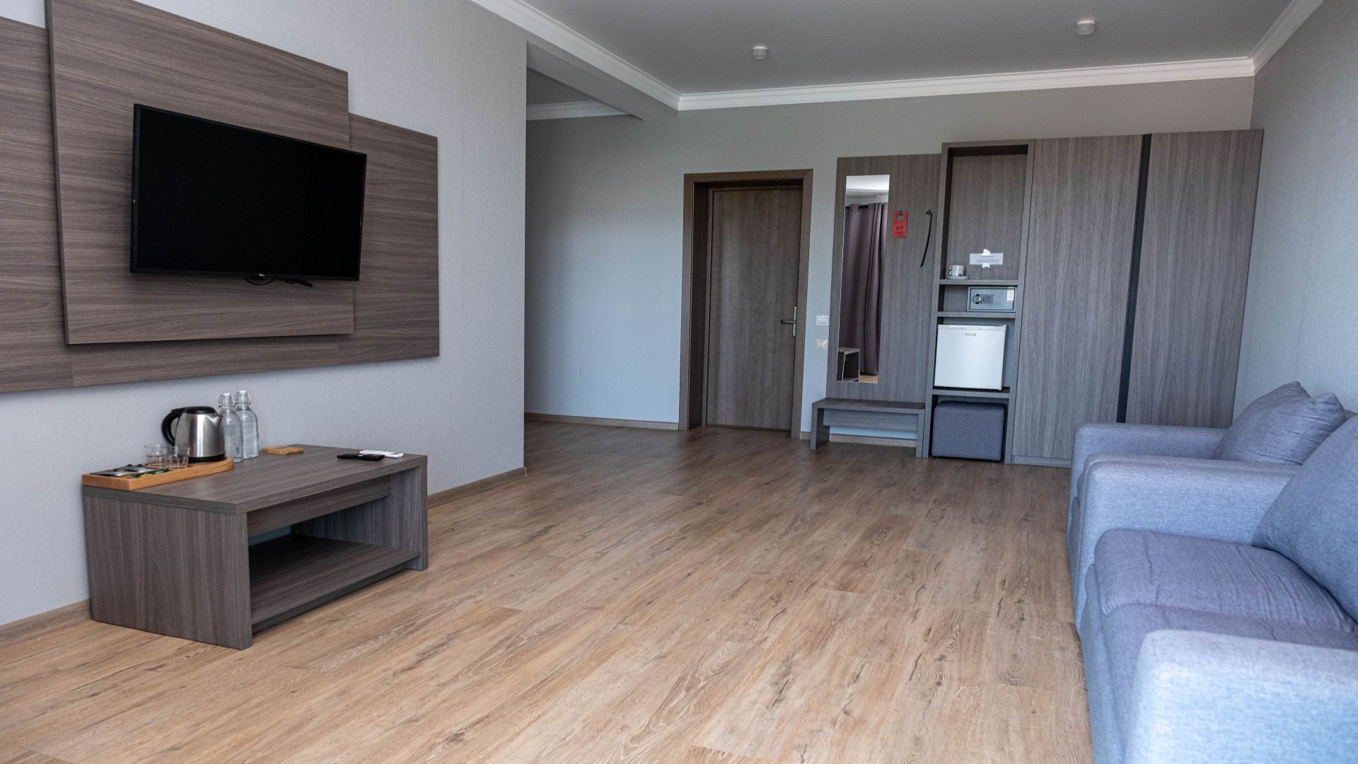 В номере: душ, туалет, ТВ, холодильник, кондиционер, сейф, фен, двуспальная кровать, диван, балкон