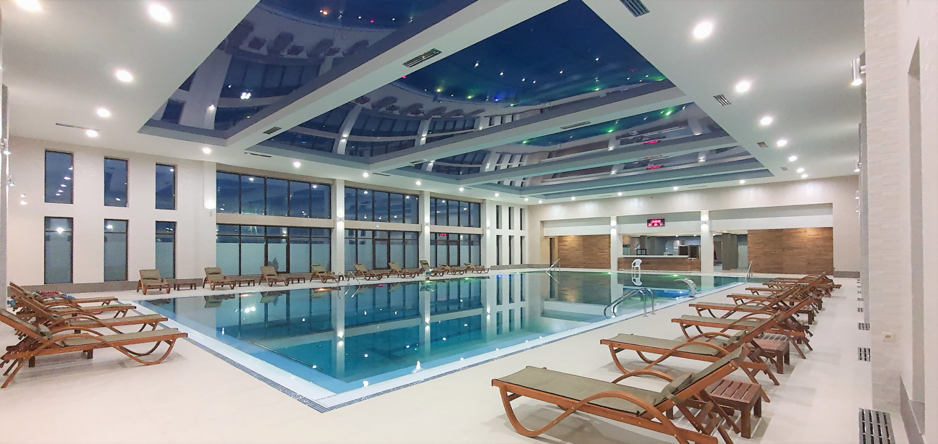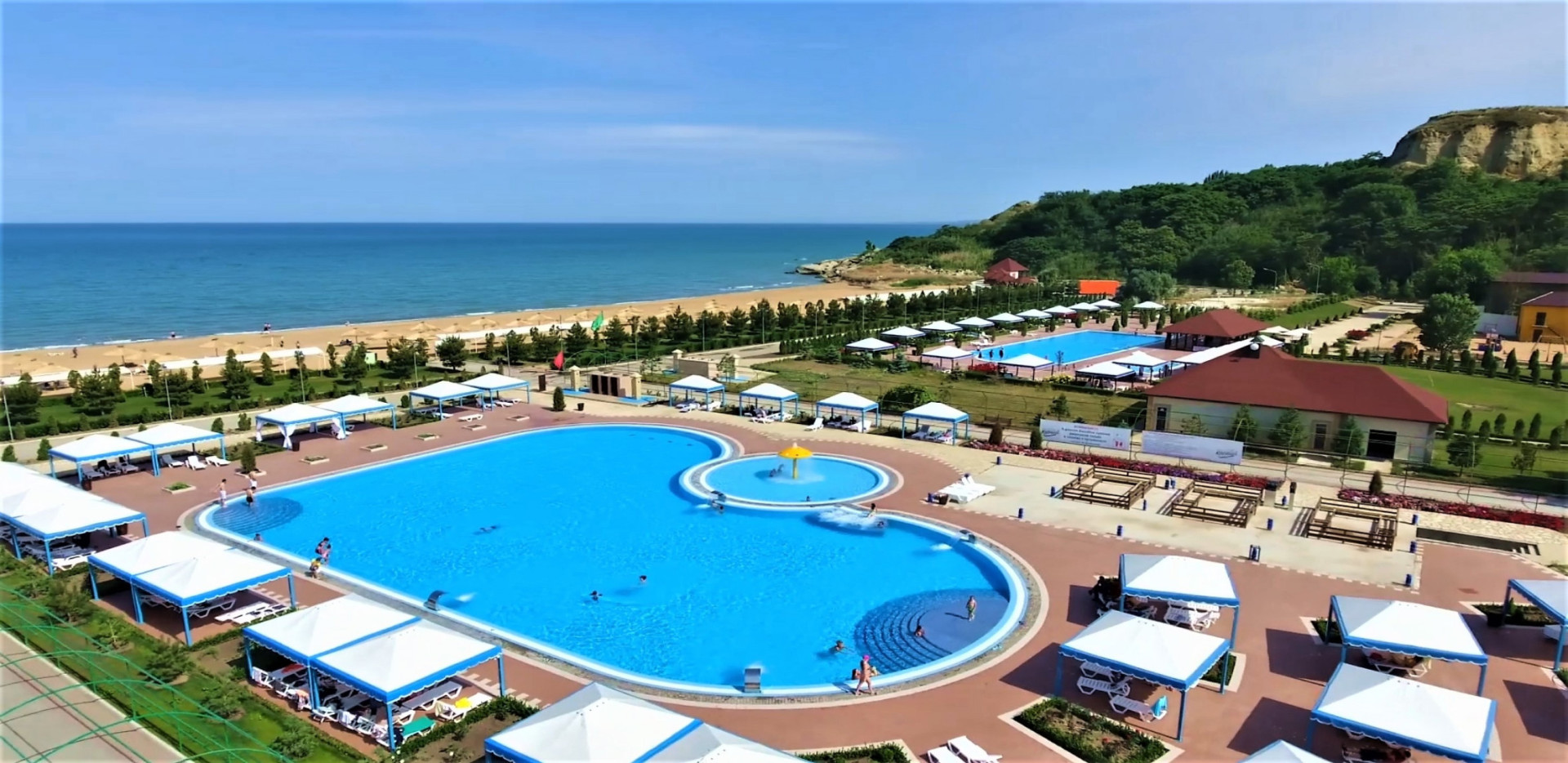 В распоряжении отдыхающих два бассейна — открытый и крытый, библиотека, настольные игры. По вечерам проходят показы кинофильмов и проводятся досуговые мероприятия. На всей территории доступен беспроводной интернет, для автовладельцев организована охраняемая парковка. Деловые мероприятия, бизнес-встречи можно провести в малом или большом конференц-залах. Первый рассчитан на 180 человек, второй больше подойдет для совещаний — он вмещает до 30 гостей. Для юных туристов в санатории организована детская площадка с горками и качелями и игровая комната. В 100 метрах от жилых корпусов расположился песчаный городской пляж. На пляже работают туалеты, есть зонтики, лежаки, шезлонги.