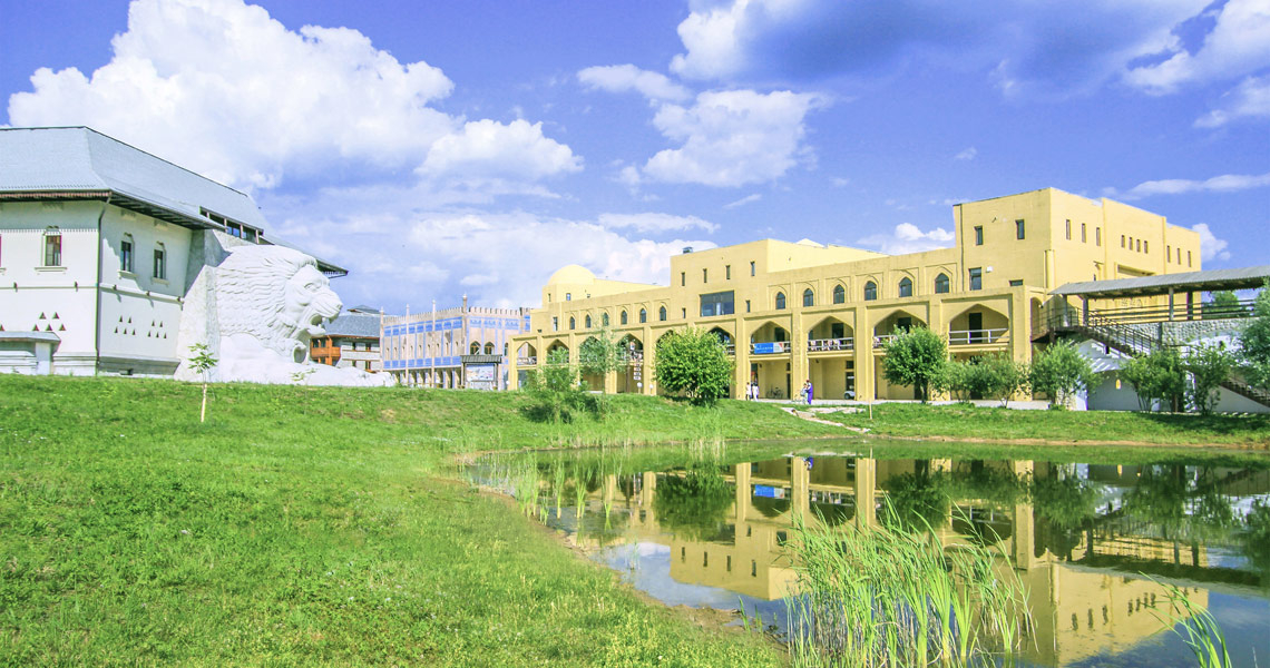 ЭТНОМИР - это самый большой этнографический парк России, расположен в Калужской области в 90 км от Москвы. Предлагающий гостям большой выбор экскурсий, мастер-классов, банкетных и анимационных программ и других развлечений для организации познавательного и яркого семейного, детского, молодёжного, корпоративного отдыха. Здесь на площади 140 га представлены архитектура, национальная кухня, ремёсла, традиции и быт практически всех стран. Каждой стране отведён своеобразный «культурный заповедник» - этнодвор. Изюминка ЭТНОМИРа - его интерактивность. Проект живёт и развивается ежедневно. Кипит работа в ремесленных мастерских, пестрят диковинками сувенирные лавки, распахнуты двери музеев, ведут неторопливое повествование хранители культур, приветствуют гостей пушистые и пернатые питомцы ЭТНОМИРа. «Караван-сарай» стоит между Конгресс-холлом «Диалог культур», рядом назодятся: ресторан «Чайхана», ресторан китайской и японской кухни «ЯККиТОФУ», Кафе «Трапезная». Во внешнем облике здания и его внутренней отделке легко угадываются мотивы архитектурных шедевров Самарканда, Бухары, Хивы. Именно они воссоздают чарующий образ сказочного, средневекового азиатского города.