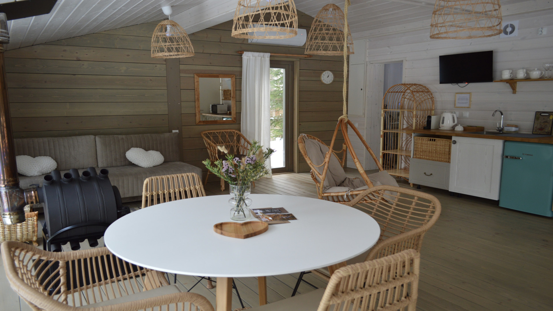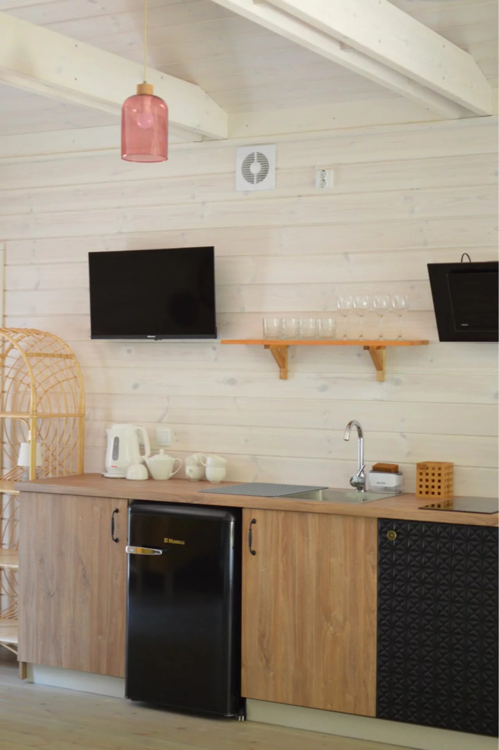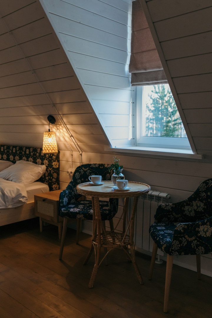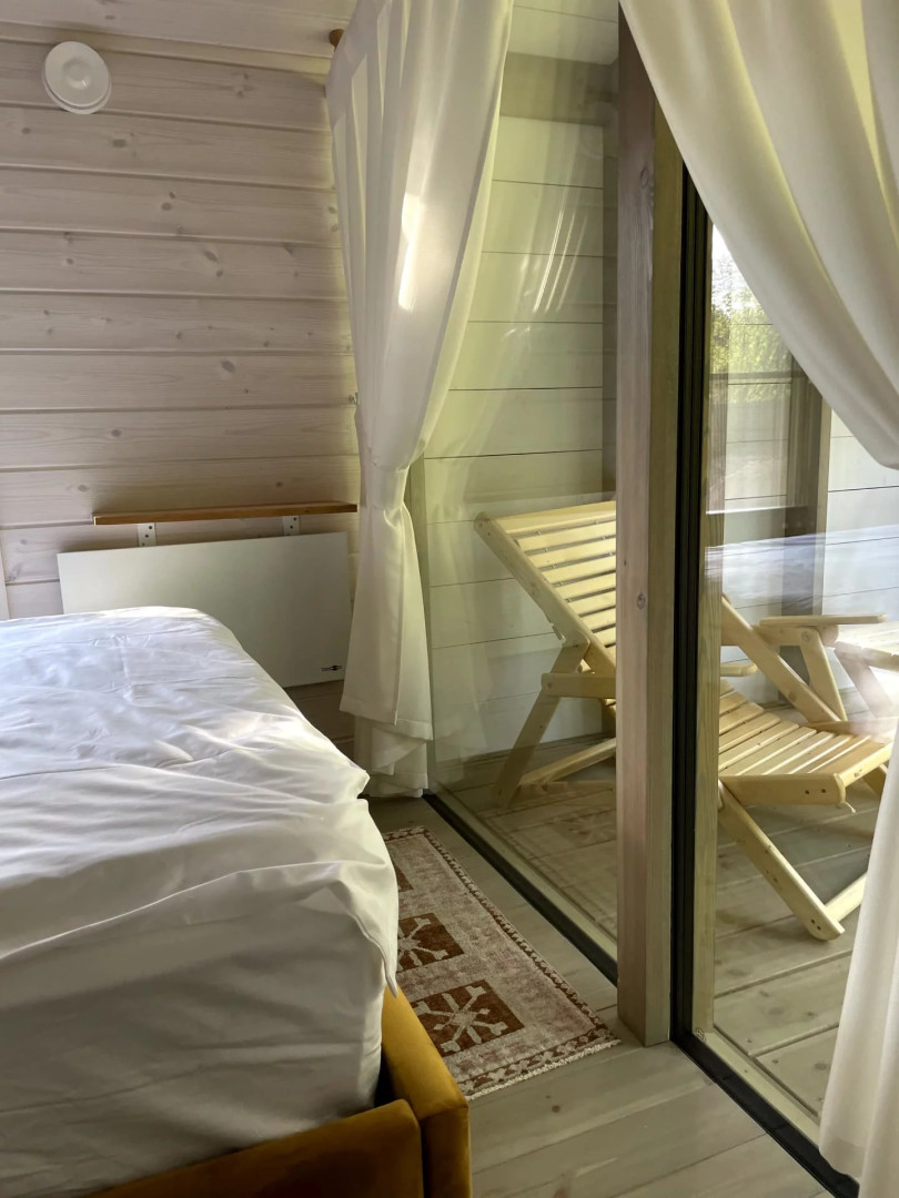 Так важно порой просто побыть вдвоём, выпить ароматного чая и насладиться прекрасным видом природы из панорамных окон уютного гостевого дома вдали от суеты! Особенности номера: Панорамный дом с 1 спальной комнатой и гостиной-кухней.