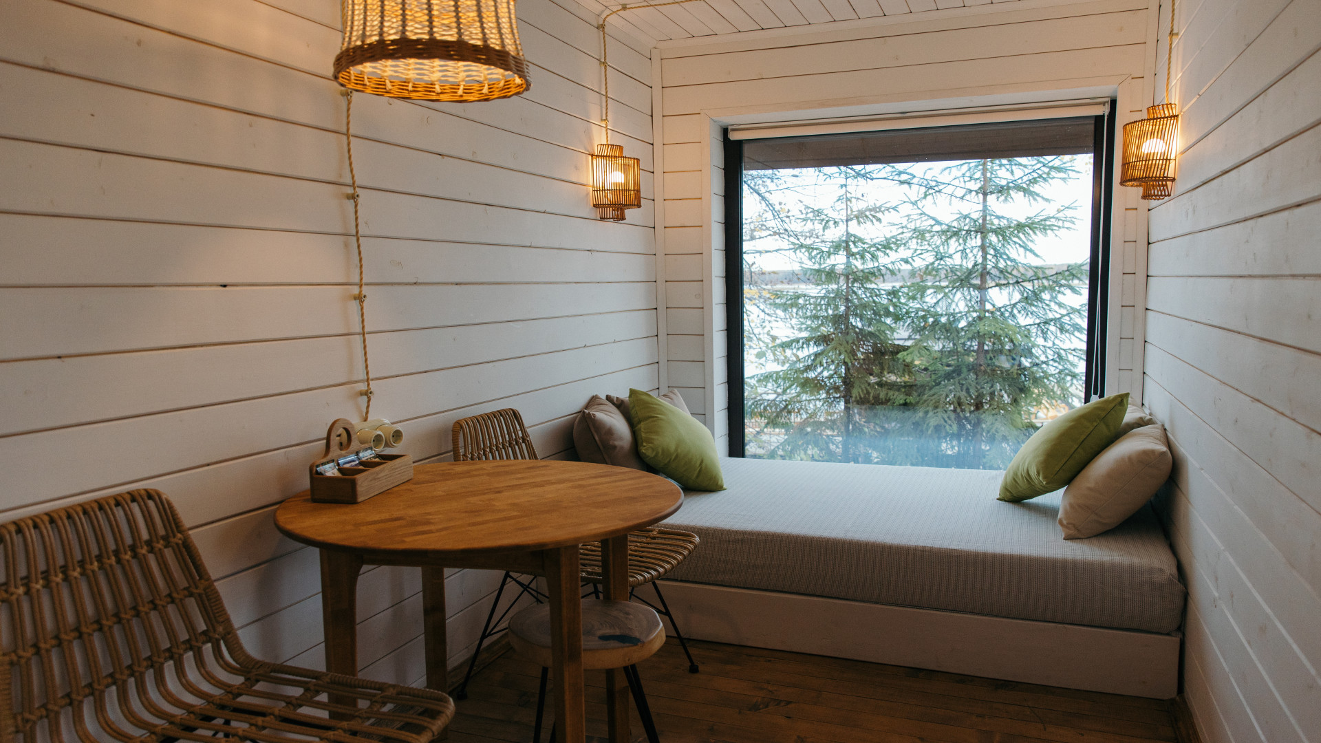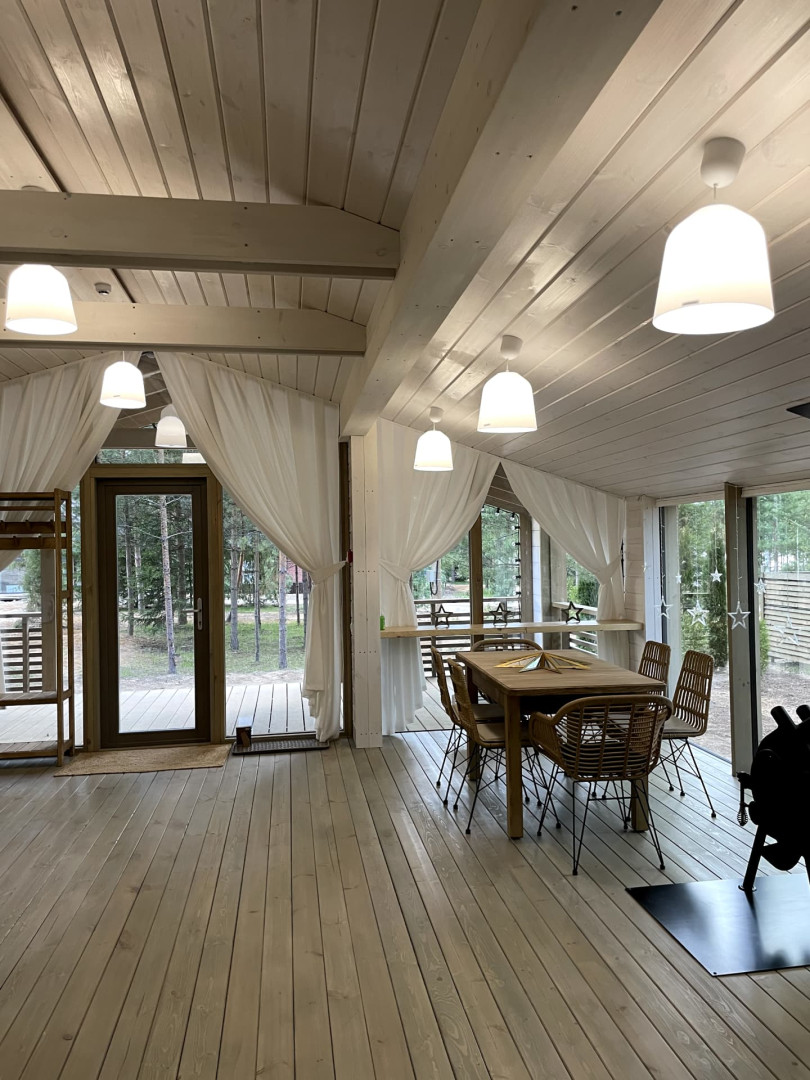 Дом Солнца расположен на самом берегу реки и именно в этом доме оно просыпается и здесь же желает сладких снов своим Гостям! Особенности номера: Панорамный дом с 3 спальными комнатами и гостиной-кухней с собственным спуском к воде.