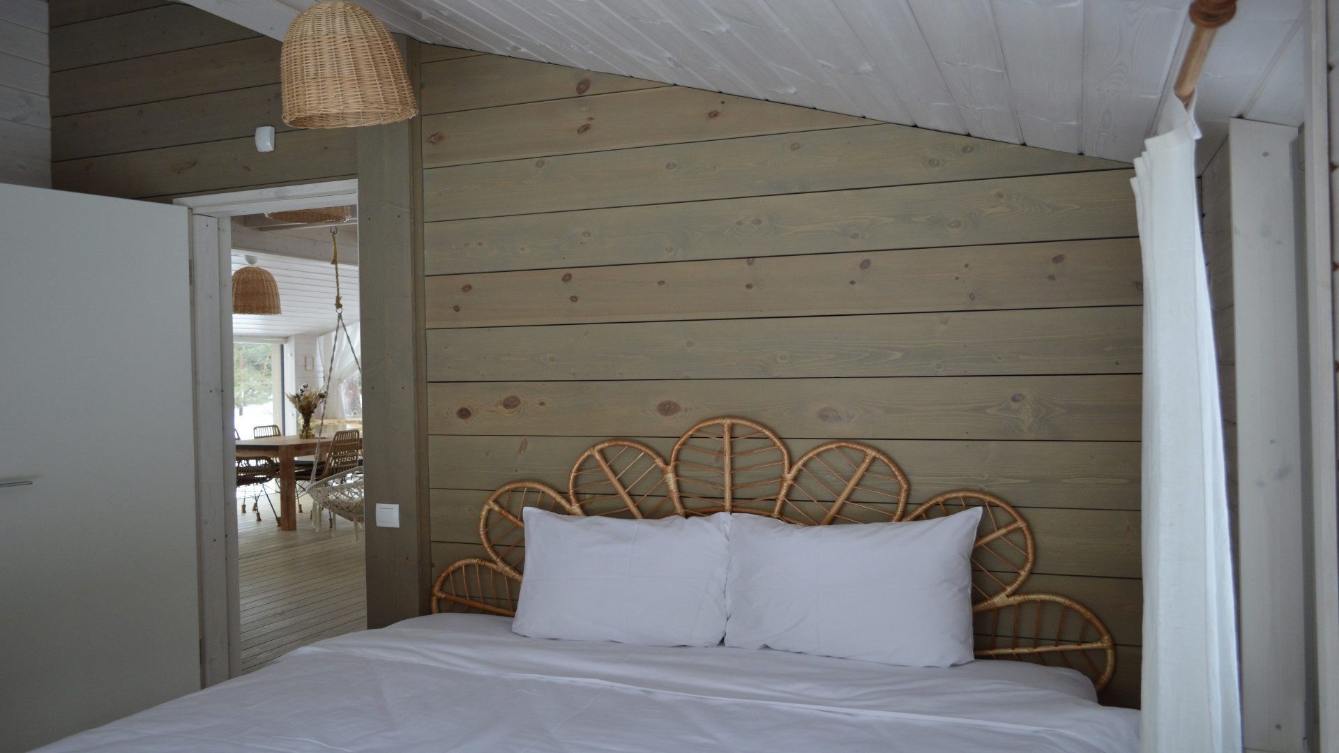 В коттедже: душ, ванна, туалет, ТВ, холодильник, кондиционер, сейф, фен, мини-кухня, электрочайник, СВЧ-печь, двуспальная кровать, диван. Сказка — это всегда загадка и это всегда красочно! Когда мы были маленькими, мир сказок наполнял нас и манил своим волшебством. В Доме Сказок мы постарались создать эту атмосферу, чтобы гости смогли напитаться теплом и уютом, возможно, прочитав перед сном ту самую волшебную сказку! Особенности номера: Панорамный дом с 3 спальными комнатами и гостиной-кухней с собственным спуском к воде.