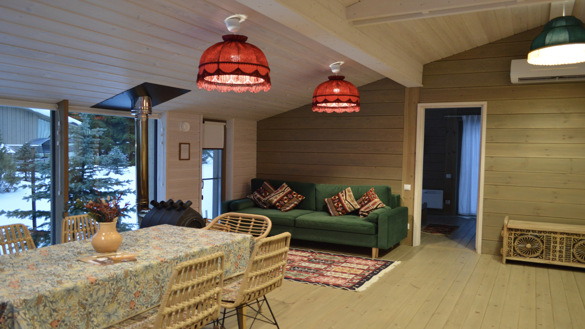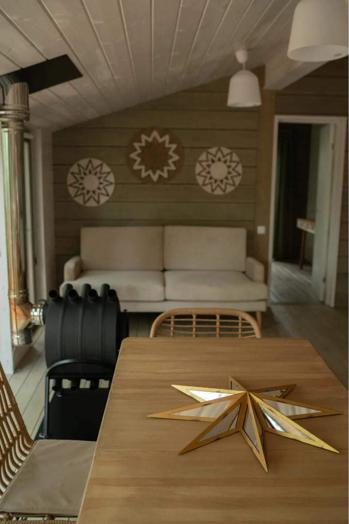 Мы верим, что каждый гость этого дома погрузится в состояние радости благодаря атмосфере, созданной здесь! Уютная качель напротив печки, чашка ароматного кофе и тёплый плед помогут радоваться настоящему моменту счастья и покоя!