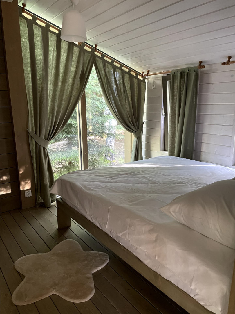 На территории экоотеля вы можете встретить вживую этих милых созданий, а уютный кошкин дом подарит вам тепло и радость! Особенности номера: Панорамный дом с 3 спальными комнатами и гостиной-кухней