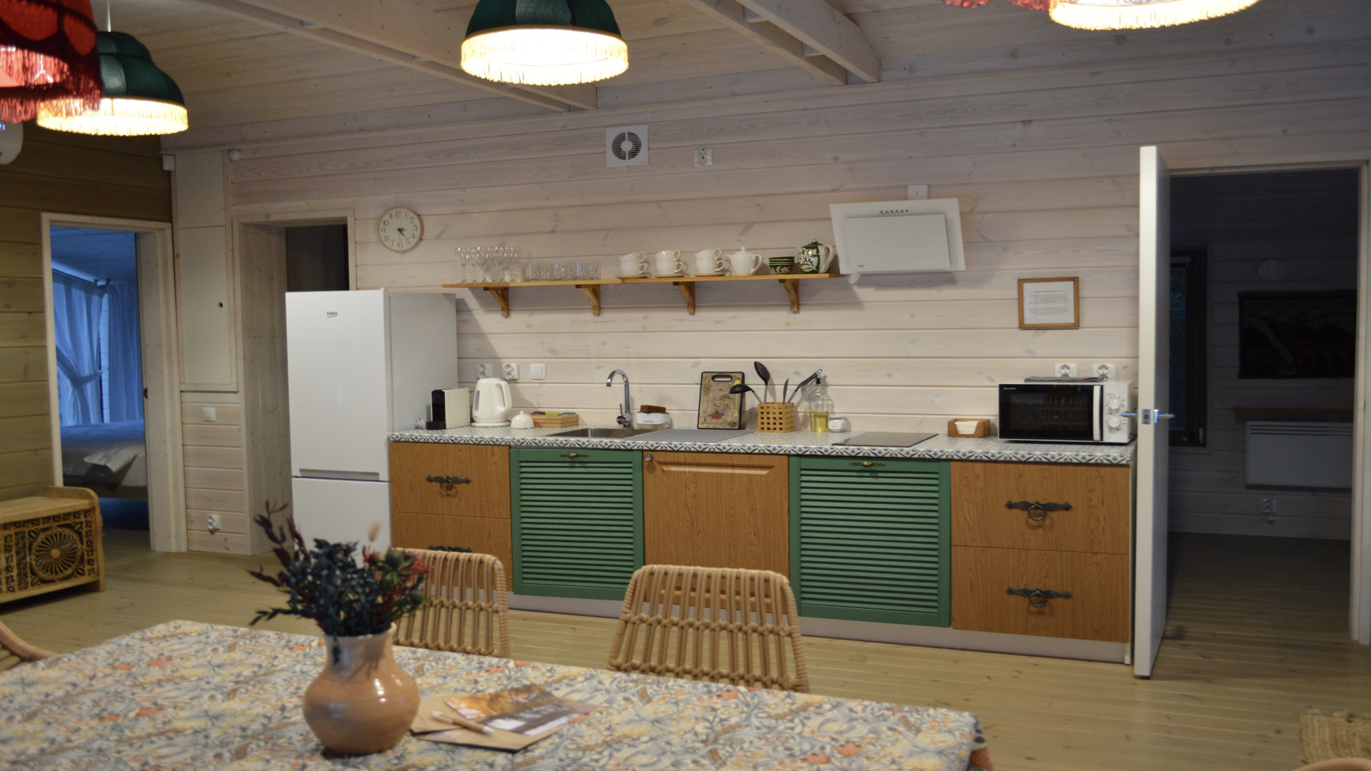 В коттедже: ванна, туалет, ТВ, холодильник, кондиционер, сейф, фен, мини-кухня, электрочайник, СВЧ-печь, двуспальная кровать, диван. В этом доме живёт Луна!