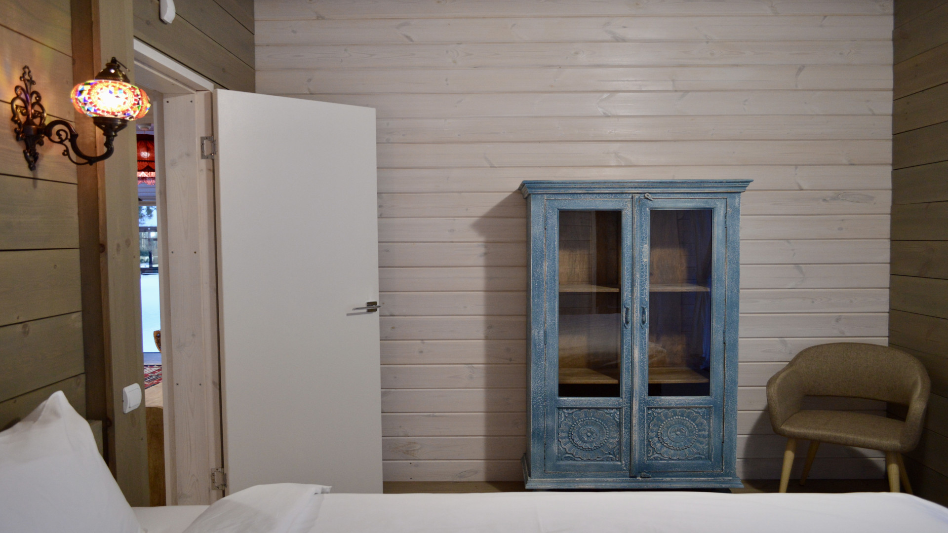 Здесь вы увидите его портрет и окунётесь в волшебную атмосферу сказки! Особенности номера: Панорамный дом с 3 спальными комнатами и гостиной-кухней.