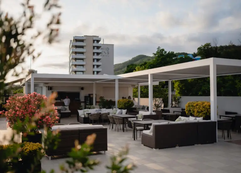 «Hidens Hotel» 4* — уникальный курортный комплекс, созданный для тех, кто ценит тишину волн, утонченную эстетику и высокий уровень сервиса. Отель расположен на первой береговой линии поселка Небуг, всего в 15 км от Туапсе. К услугам гостей 7-ми этажный корпус отеля, в котором расположены различные категории номеров: от стандартов до люксов; есть номер для людей с ограниченными возможностями; просторный SPA-центр 3000 м² (в корпусе 5*) с крытым бассейном (глубина 1,8 м), термальной зоной с хамамом, сауной и джакузи; открытый бассейн с подогревом, собственный оборудованный пляж с фуникулером, авторский ресторан «SORRENTO» и детские клубы. Гостям предоставляются косметологические и SPA-процедуры (корпус 5*). СПА Hidens Hotel гарантирует атмосферу нежности и спокойствия. Хамам, массаж при свечах, ароматы эфирных масел, витающие в воздухе, и звуки спокойной музыки — идеальные ингредиенты безоговорочного расслабления. Летом организуются анимационные программы. Галечный пляж с баром расположен в 150 метрах от здания, до него можно спуститься по лестнице или доехать на фуникулере. Пляж оборудован всем необходимым: шезлонги, зонтики и душевые, возможно арендовать катамаран, сап-борд. Отель предусматривает проживание с животными, но в определенных категориях номеров Правила размещения: