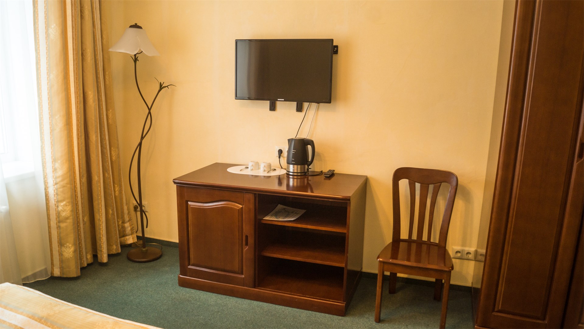 В номере: душ, туалет, ТВ, холодильник, сейф, двуспальная или две раздельные кровати