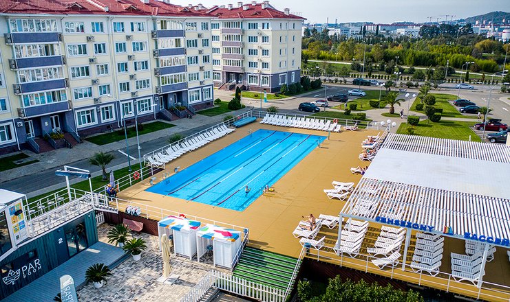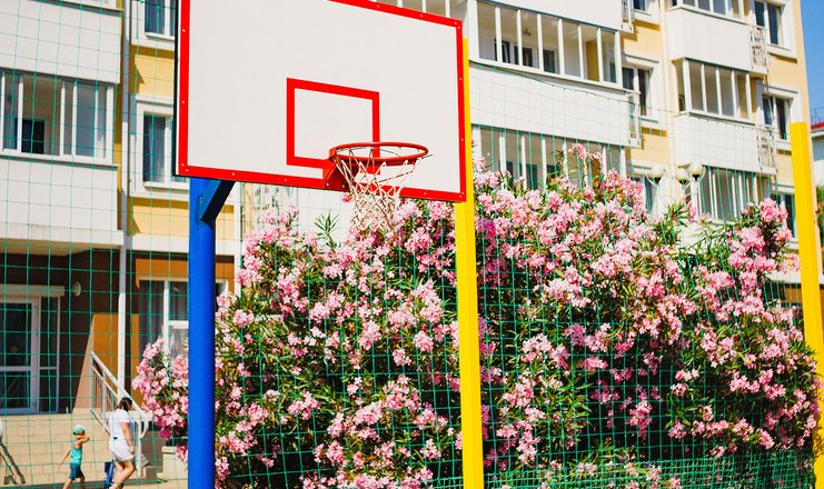 тренажерный зал (10 корпус), галечный (экологически чистый благоустроенный пляж, удостоен международной наградой «Голубой флаг» в 800м)