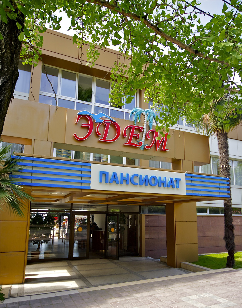 Пансионат «Эдем» расположен в сорока метрах от моря, практически на пляжной полосе, состоит из двух трехэтажных спальных корпусов на 270 мест. Находясь в номере, гости не только смогут полюбоваться прекрасным видом на море, но и насладятся волшебным шумом прибоя. Пансионат идеально подходит для семейного отдыха, а также для гостей, желающих пройди санаторно-курортное лечение и укрепить свое здоровье.