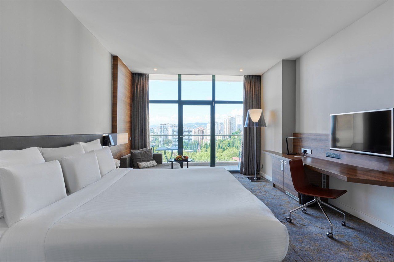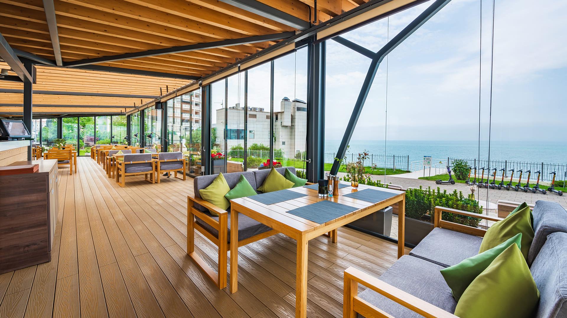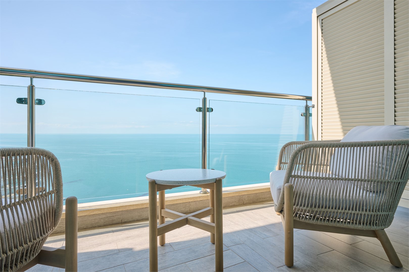 открытый бассейн без подогрева (2 открытых бассейна (взрослый и детский) – в летний период), крытый бассейн (на 16 этаже с панорамным видом на море), тренажерный зал (с панорамным видом на море в СПА-центре), сауна, парковка, Wi-Fi, хаммам, галечный (фирменный пляж, оборудованный, в летний перио)
