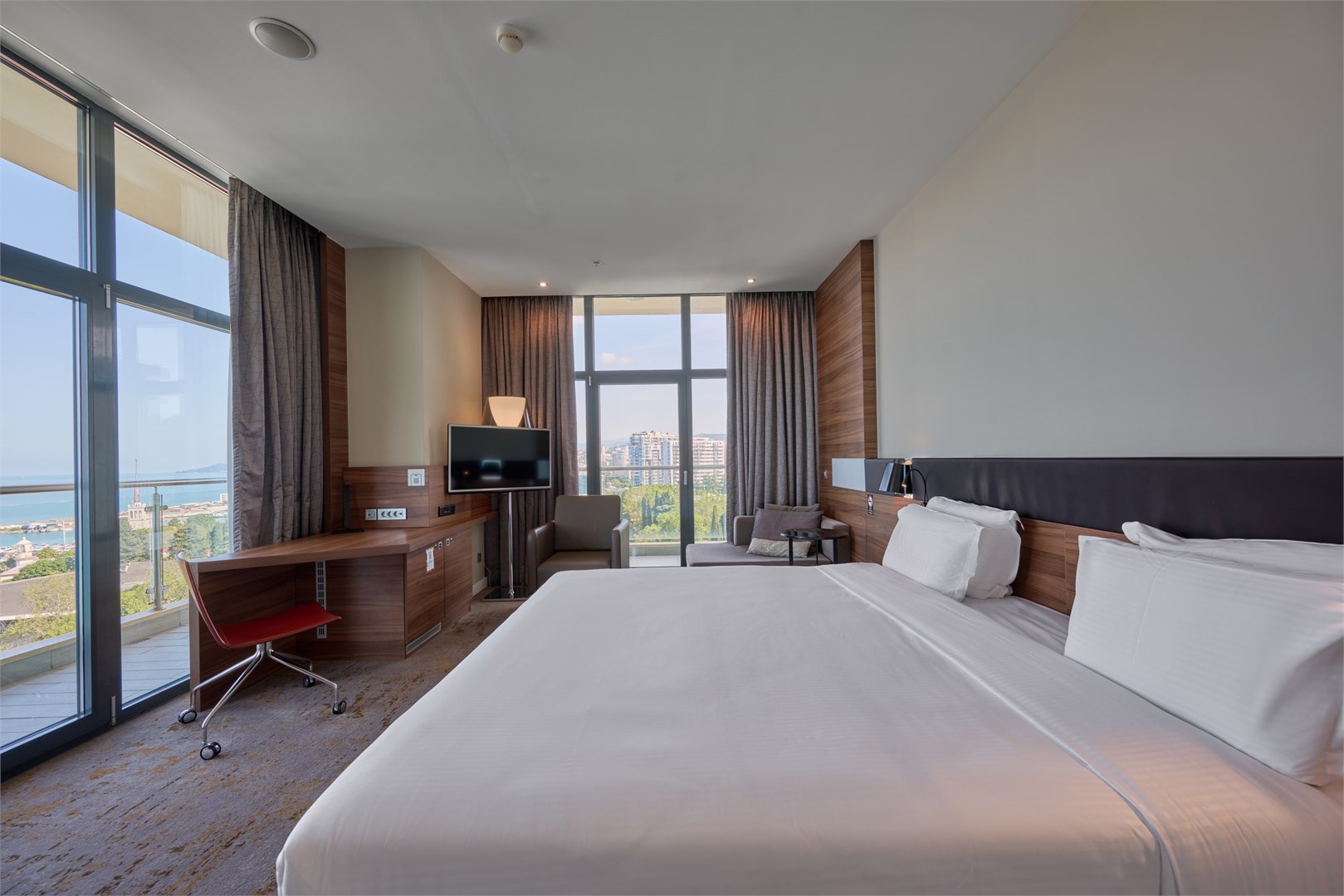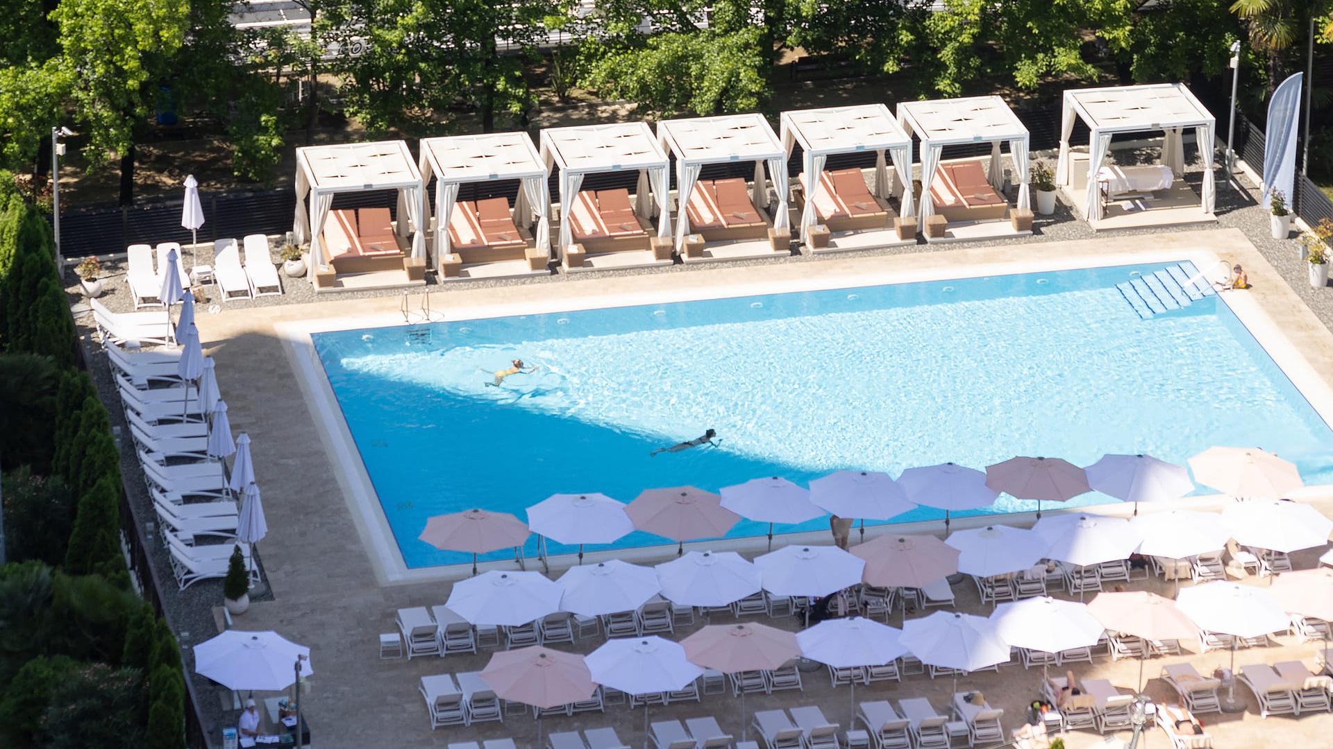 открытый бассейн без подогрева (2 открытых бассейна (взрослый и детский) – в летний период), крытый бассейн (на 16 этаже с панорамным видом на море), тренажерный зал (с панорамным видом на море в СПА-центре)