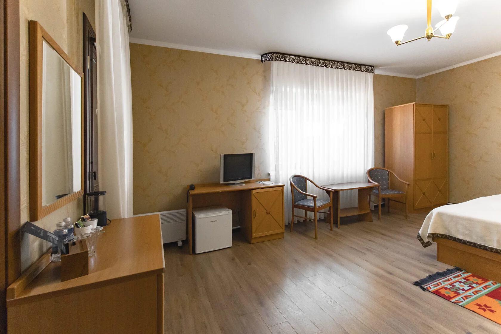 В номере: душ, туалет, ТВ, холодильник, сейф, фен, телефон, чайная станция, двуспальная или две раздельные кровати, балкон
