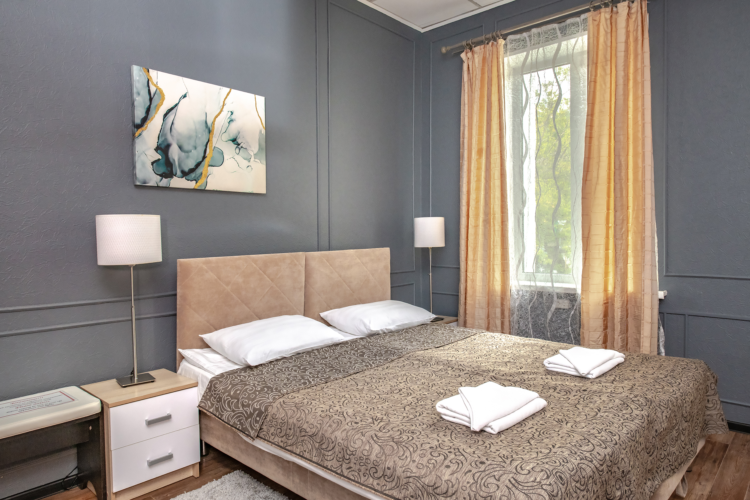 В номере: душ, туалет, ТВ, холодильник, кондиционер, фен, мини-кухня, электрочайник, СВЧ-печь, двуспальная или две раздельные кровати, диван. Максимальное размещение 2+2