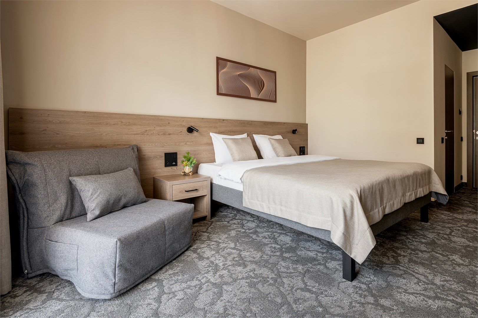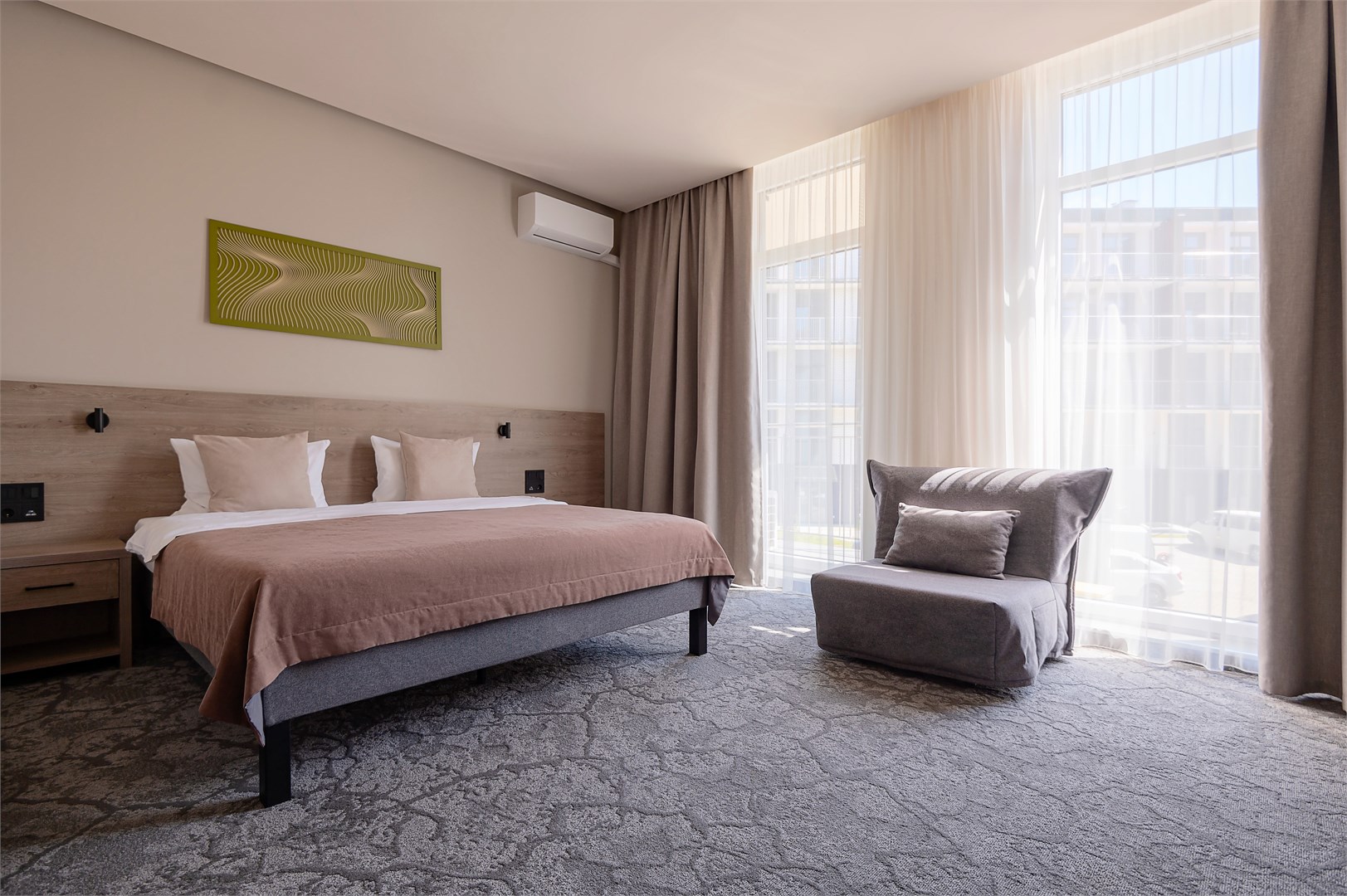 Все номера Greengate Hotel&SPA оснащены панорамными окнами с димаутами, функциональной мебелью, ортопедическими матрасами для комфортного сна, качественным постельным бельем и аксессуарами для душа. В отделке номеров использованы натуральные материалы: дерево, природный камень, натуральные ткани. Интерьеры номеров выполнены в светлых, теплых тонах с элементами эко-стиля.