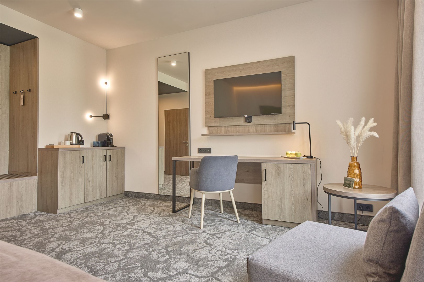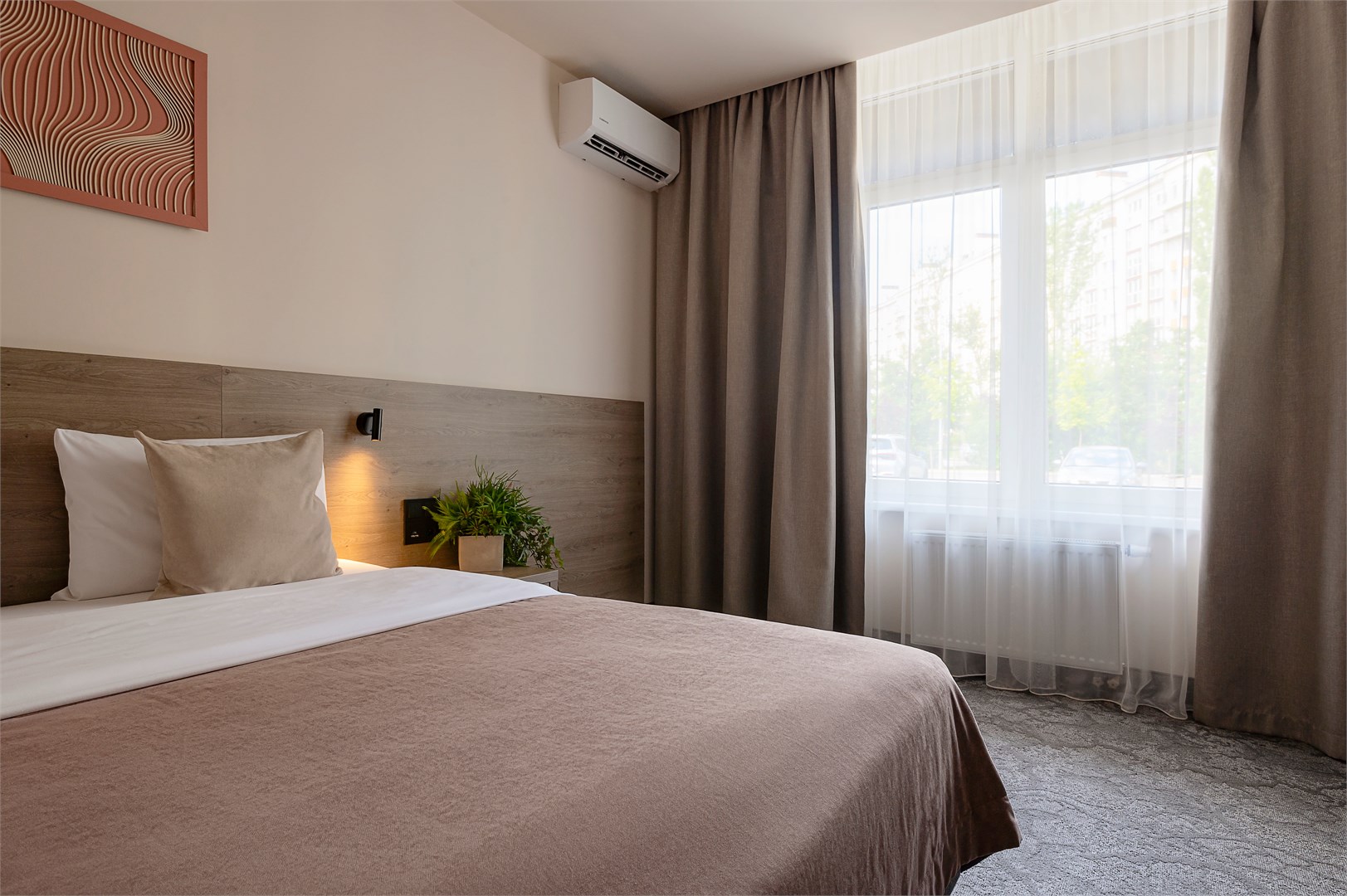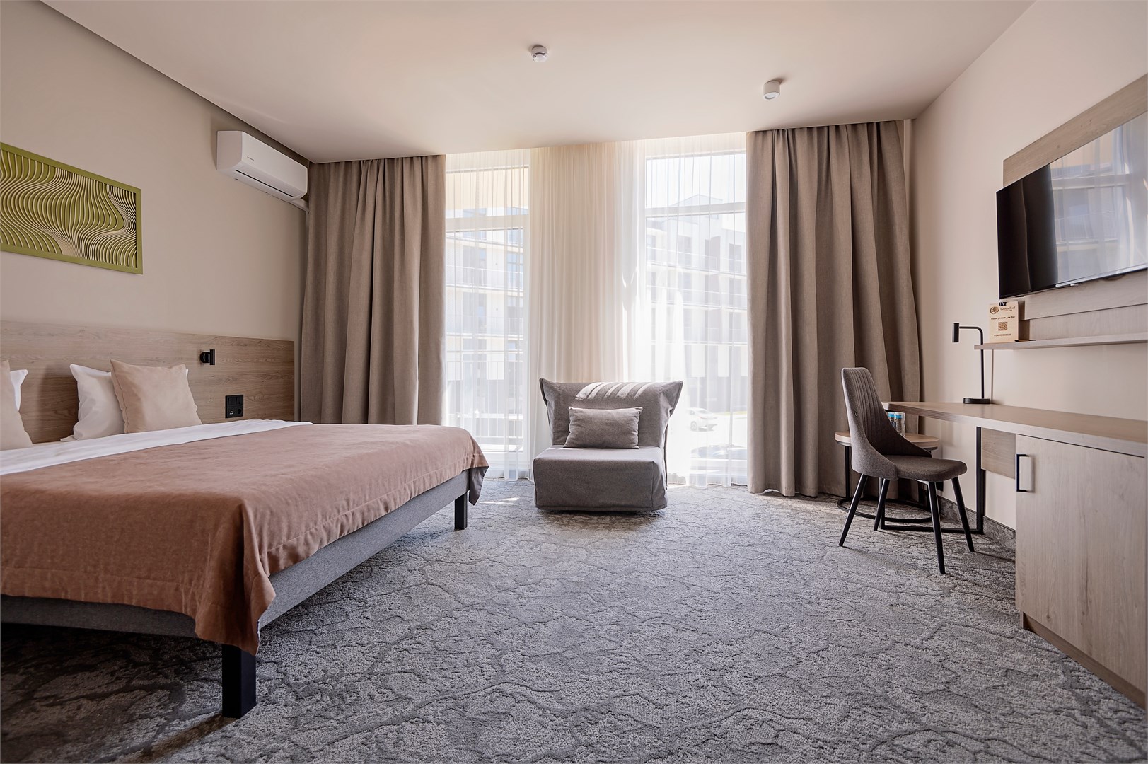 В номере: душ, туалет, ТВ, холодильник, кондиционер, сейф, фен, телефон, чайная станция, двуспальная кровать, кресло Подходит для для гостей с ограниченными возможностями.