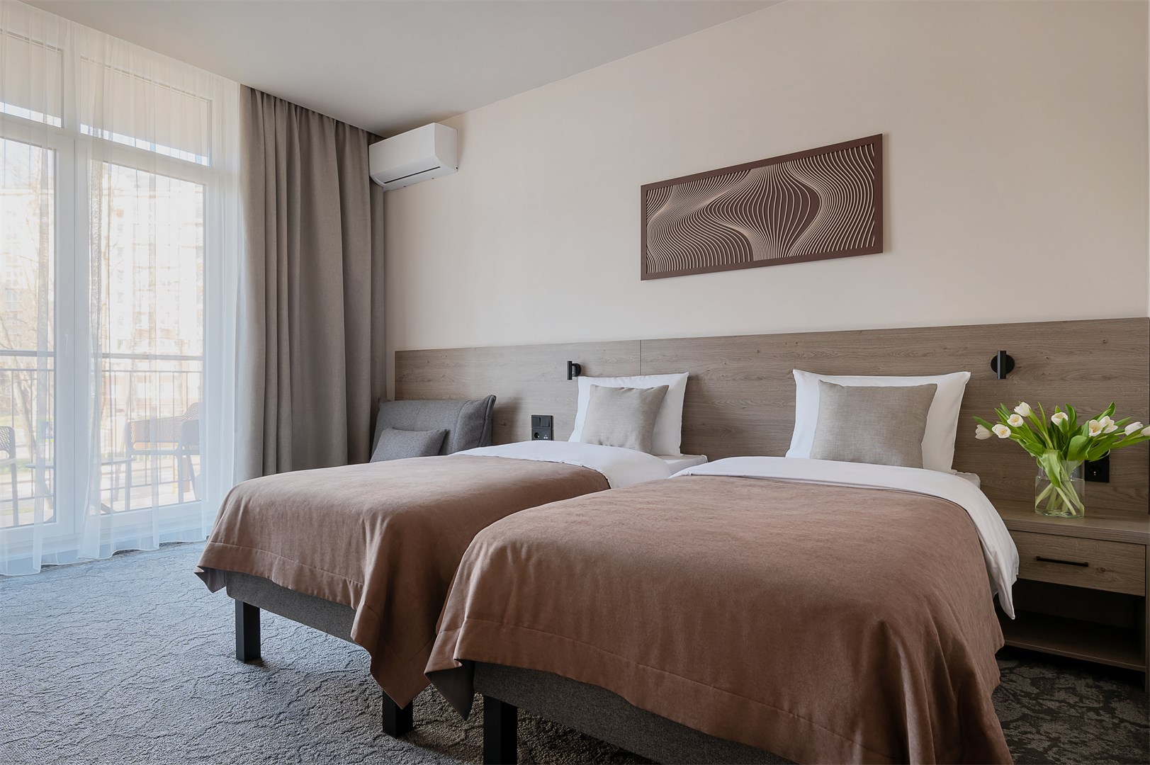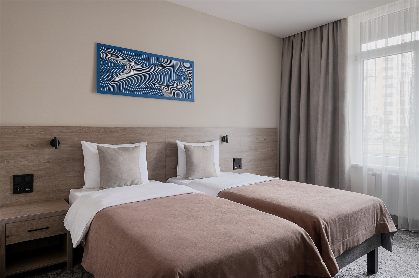 В номере: душ, туалет, ТВ, холодильник, кондиционер, сейф, фен, телефон, чайная станция, две раздельные кровати, кресло Подходит для для гостей с ограниченными возможностями.