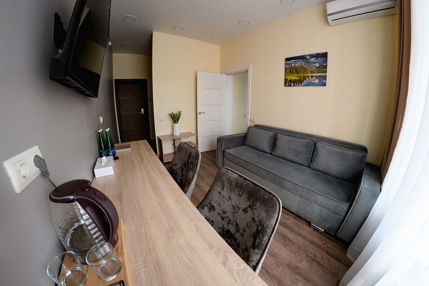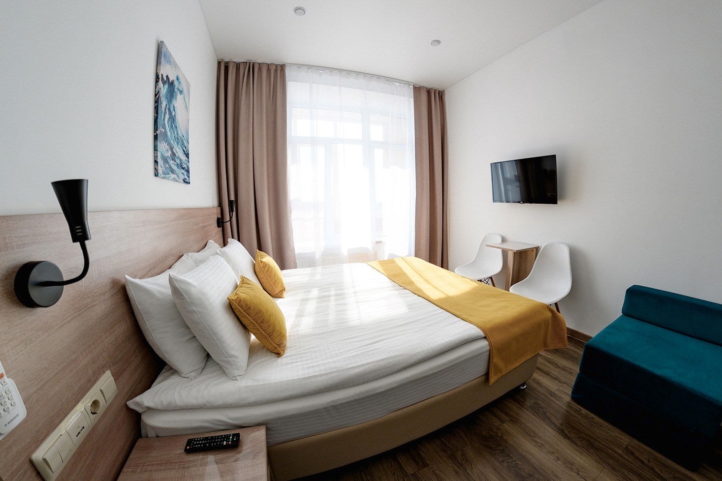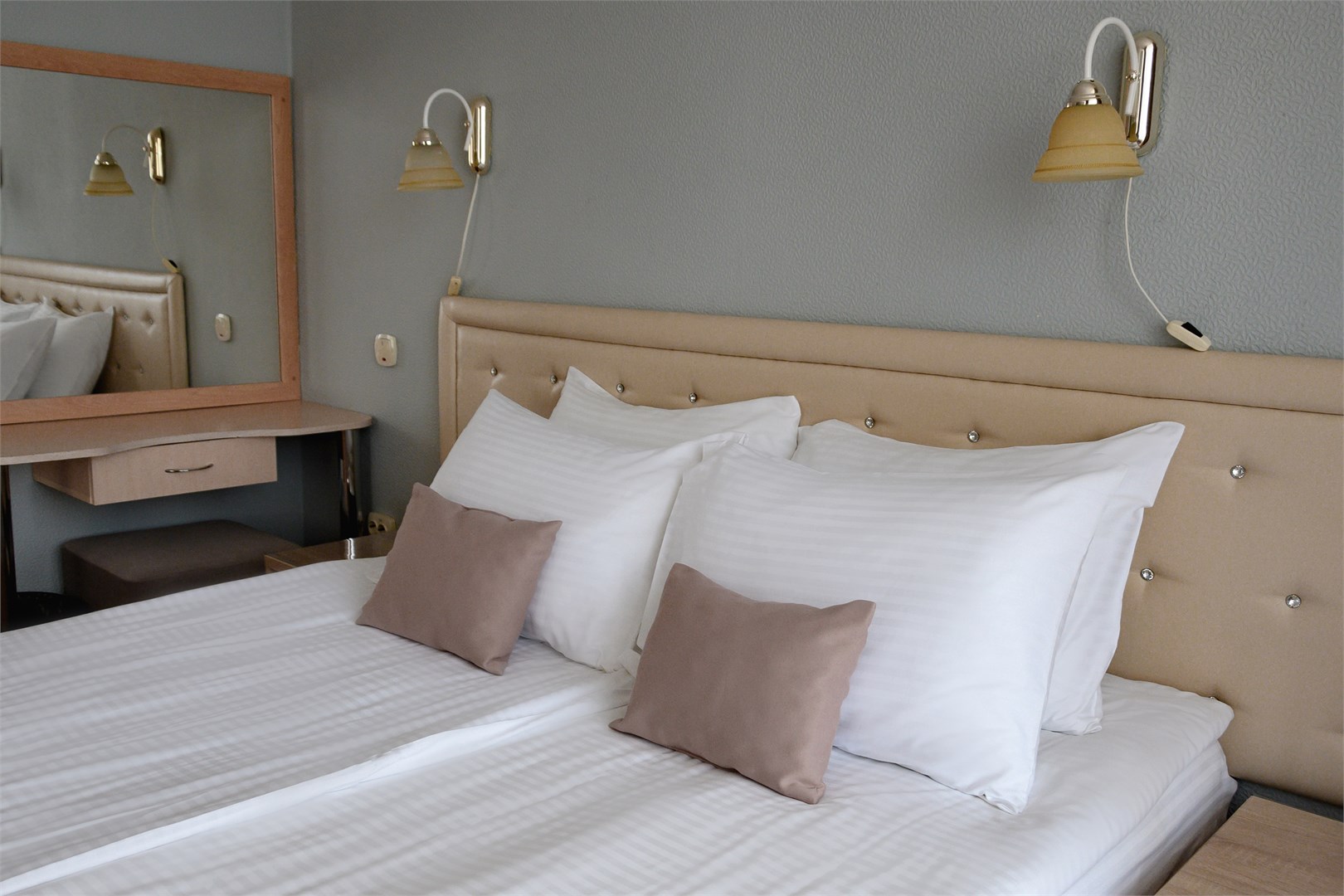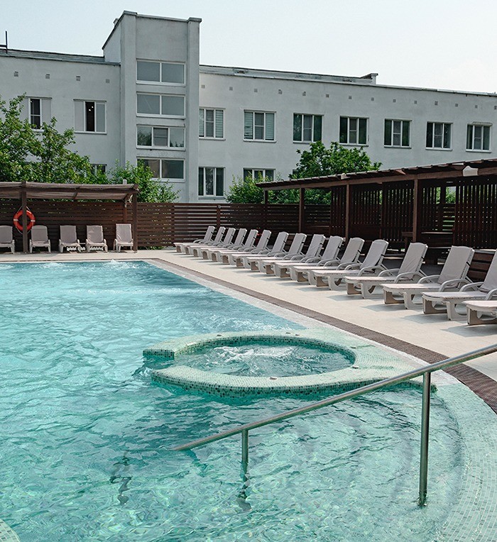 тренажерный зал, спортивная площадка, прокат спортивного инвентаря, каток (в зимний период), открытый бассейн с подогревом, СПА-комплекс (термальный), киноконцертный зал, библиотека, анимация, Wi-Fi, песчаный (собственный, на берегу озера; оборудованный), озеро (оз. Подборное, собственный пляж, оборудованный)