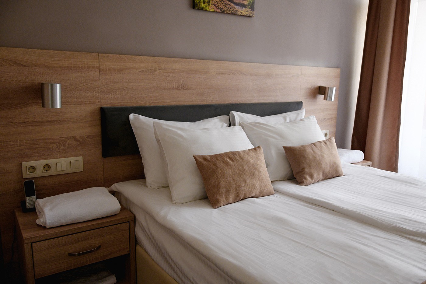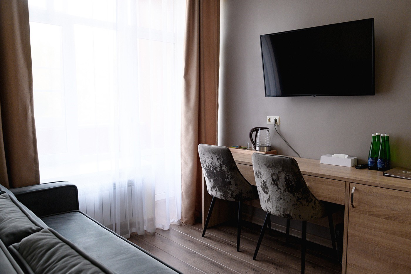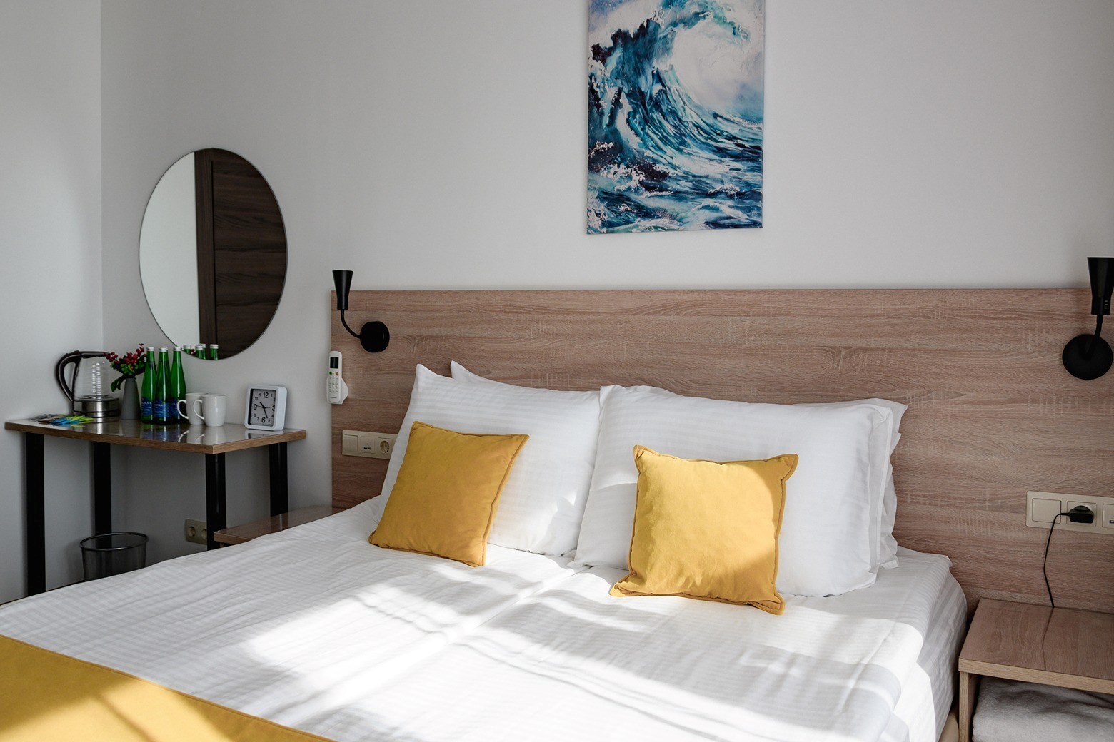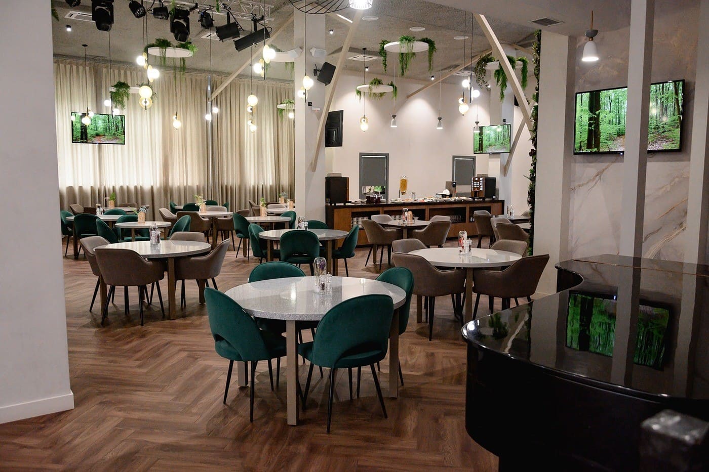 тренажерный зал, спортивная площадка, прокат спортивного инвентаря, каток (в зимний период), открытый бассейн с подогревом, СПА-комплекс (термальный), киноконцертный зал, библиотека, анимация, Wi-Fi, песчаный (собственный, на берегу озера; оборудованный), озеро (оз. Подборное, собственный пляж, оборудованный)