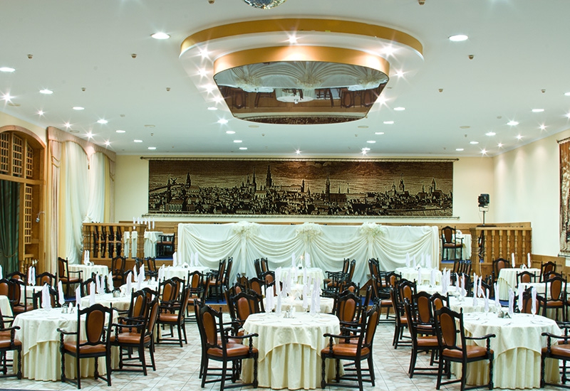 В гостинице работают два ресторана на 100 и 250 посадочных мест, предлагающие многообразие блюд русской и европейской кухонь в элегантной обстановке. Принимаются заказы на организацию банкетов, корпоративных вечеринок, фуршетов и других праздничных мероприятий. Еду и напитки можно заказать в номер по внутреннему телефону. Также открыт круглосуточный лобби-бар в холле, подходящий как для деловых встреч, так и для спокойного отдыха под приятную музыку.