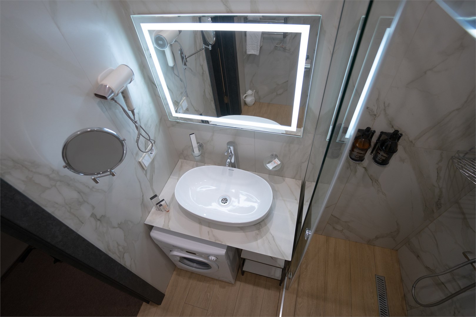 В номере: душ, туалет, ТВ, холодильник, кондиционер, сейф, фен, телефон, чайная станция, электрочайник, двуспальная или две раздельные кровати