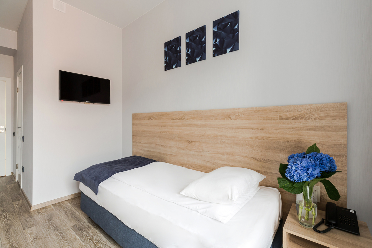 В номере: душ, туалет, ТВ, фен, телефон, электрочайник, односпальная кровать
