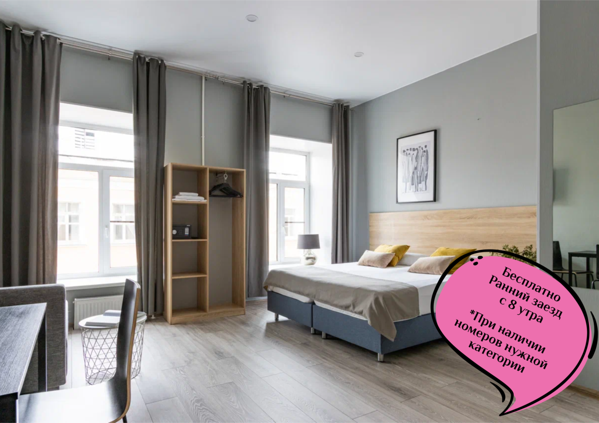 - В отеле возможен гарантированный ранний заезд, стоимость составляет 100% оплаты предыдущих суток. Услуга негарантированного раннего заезда предоставляется бесплатно с 08:00 при наличии свободных номеров.