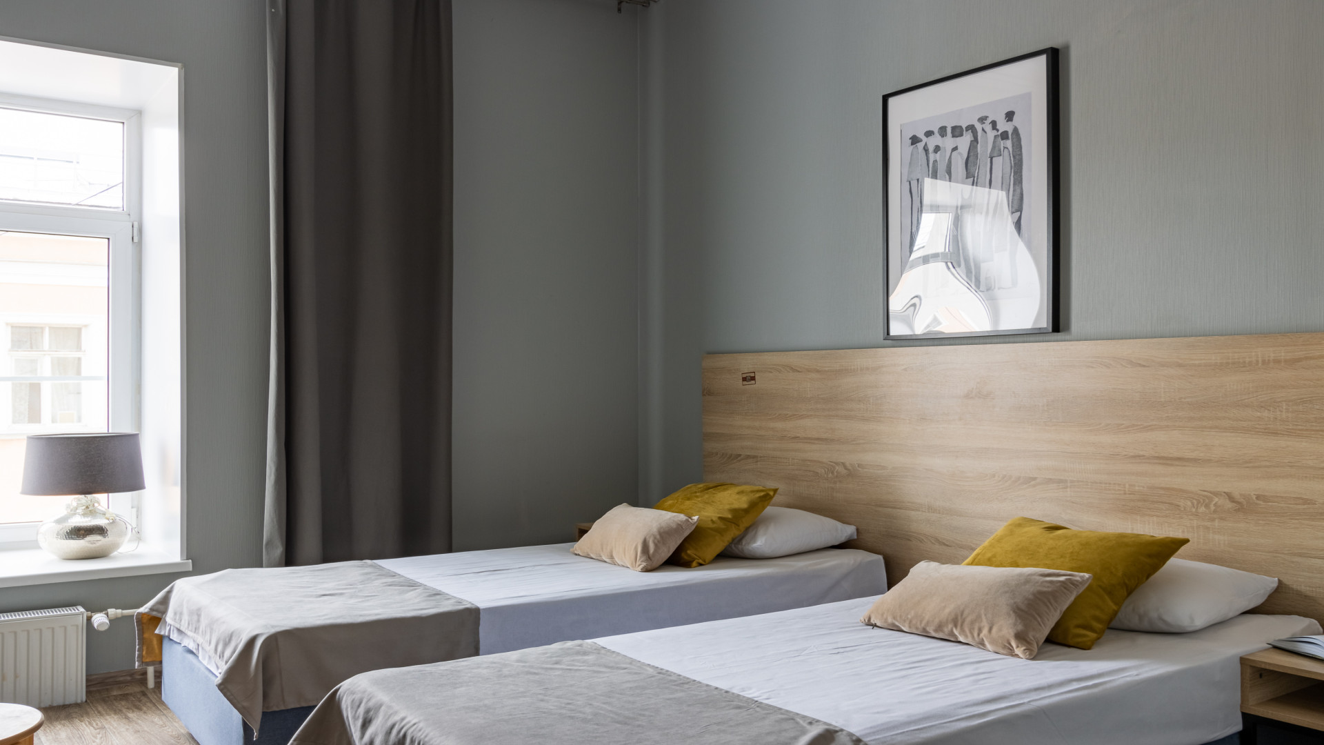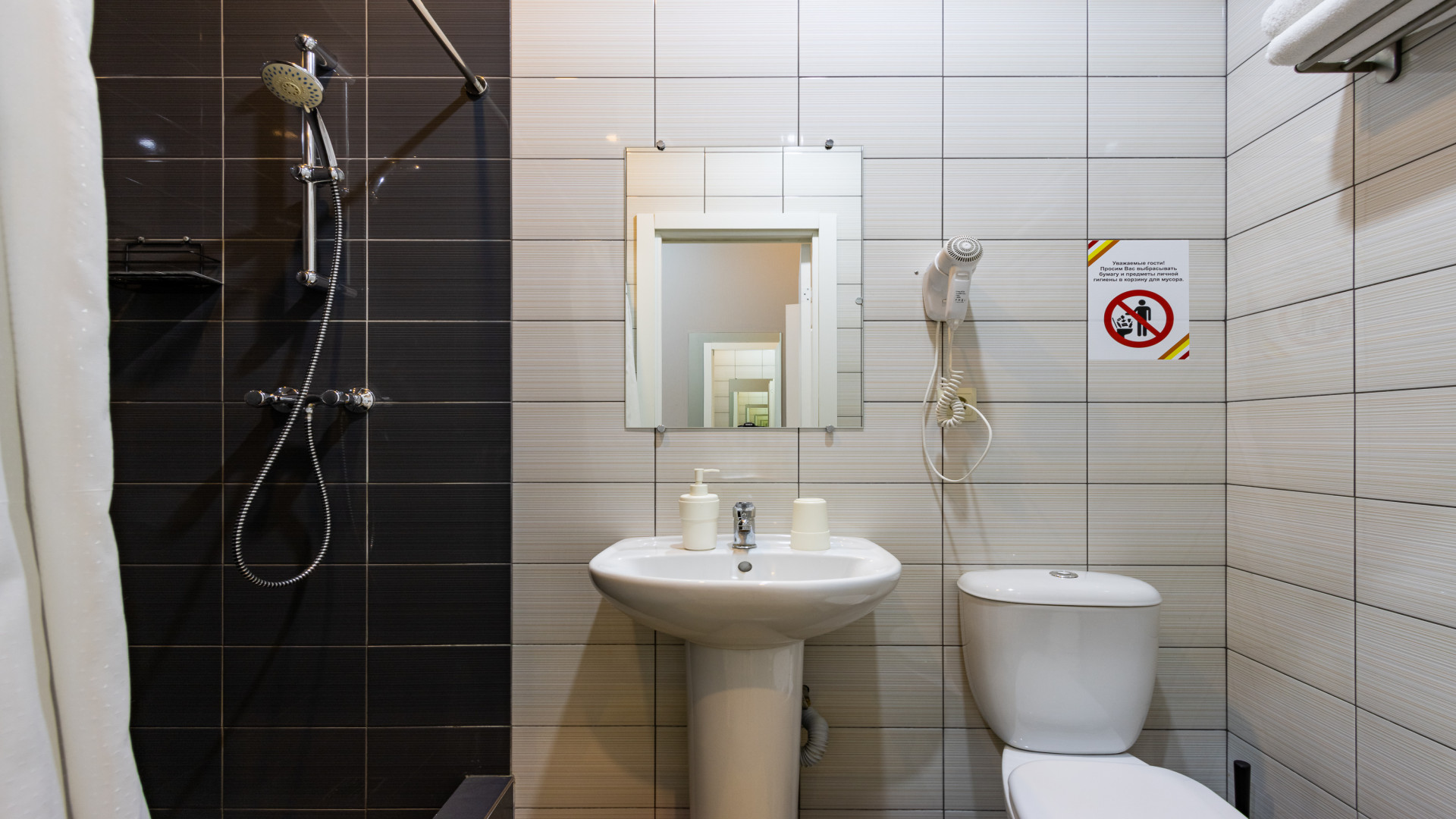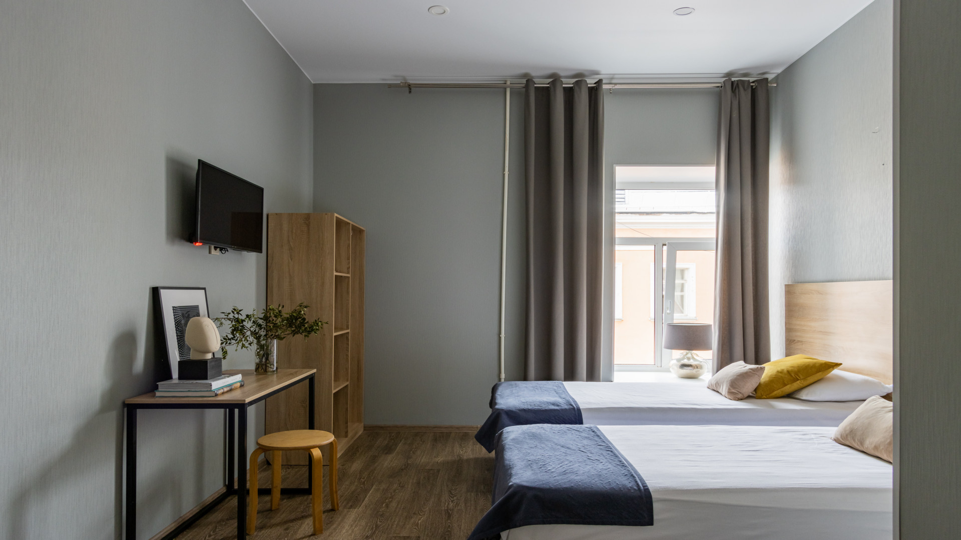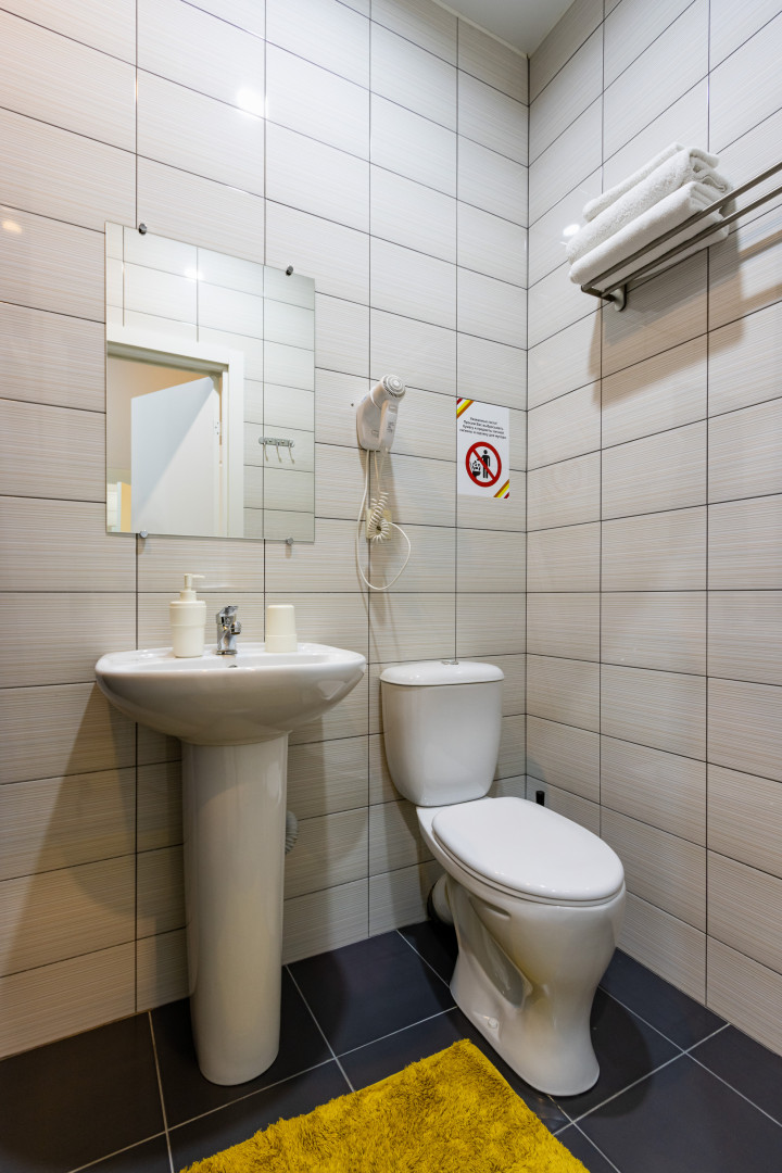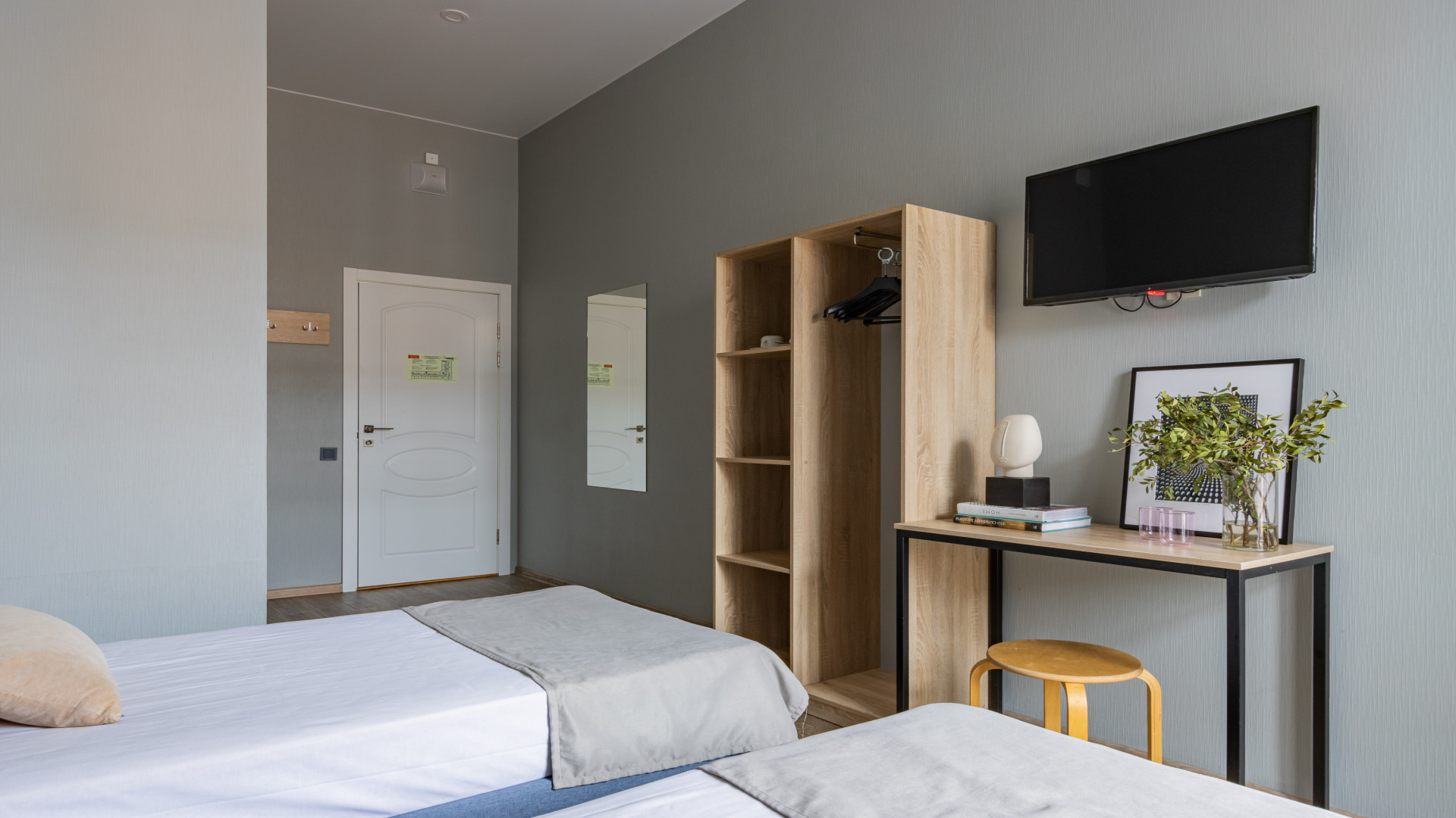 В номере: душ, туалет, ТВ, фен, телефон, электрочайник, двуспальная или две раздельные кровати