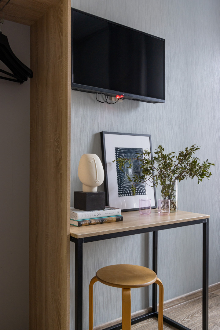 В номере: душ, туалет, ТВ, сейф, фен, телефон, электрочайник, двуспальная кровать
