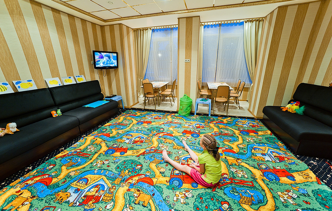 Также в отеле есть свой спортивно-развлекательный центр с боулингом, прокат велосипедов и самокатов. Есть детская площадка, детская комната и бассейн, чтобы юные гости чувствовали себя так же комфортно, как и взрослые.