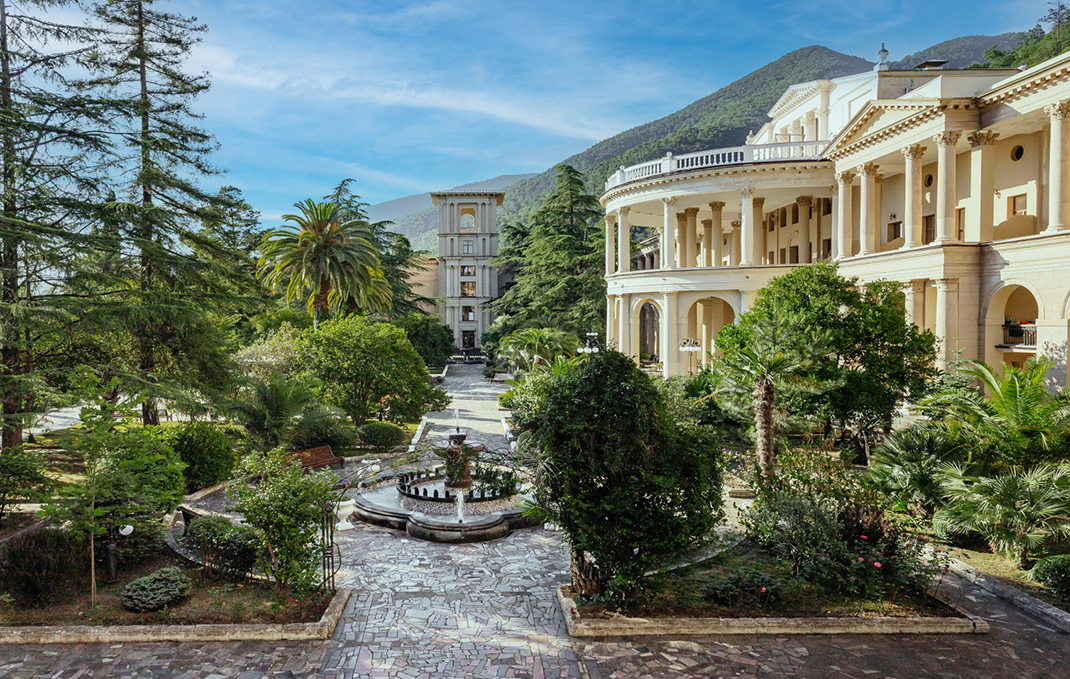 Один из самых крупных Абхазских курортных центров в городе Гагра. Он находится в окружении великолепной садово-парковой архитектуры и создает уникальную атмосферу для отдыха. Из окон отеля открываются прекрасные виды.